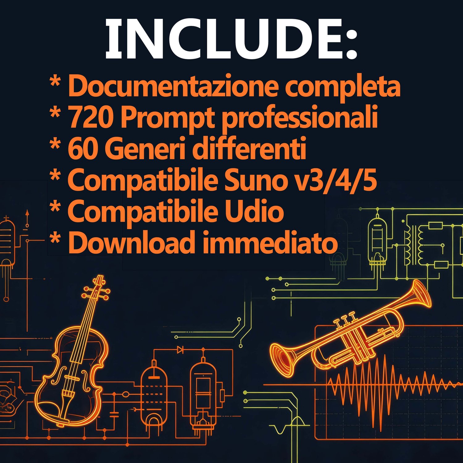 โข Ottimizzati per Suno (V3, V4, V5) e Udio.
