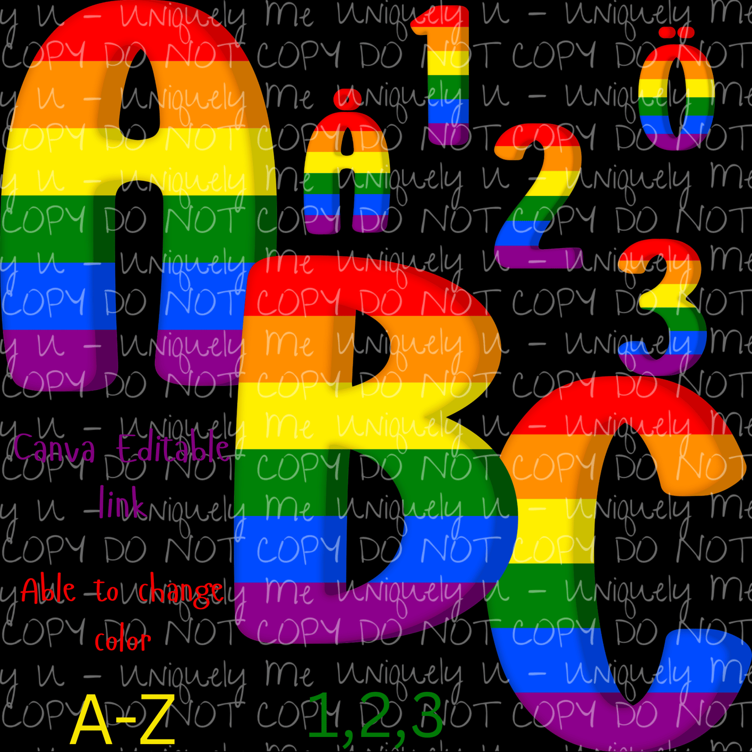 Editable Rainbow Font A-Z & 123 | Canva Uppercase + Lowercase Alphabet Letters | Printable Classroom Decor