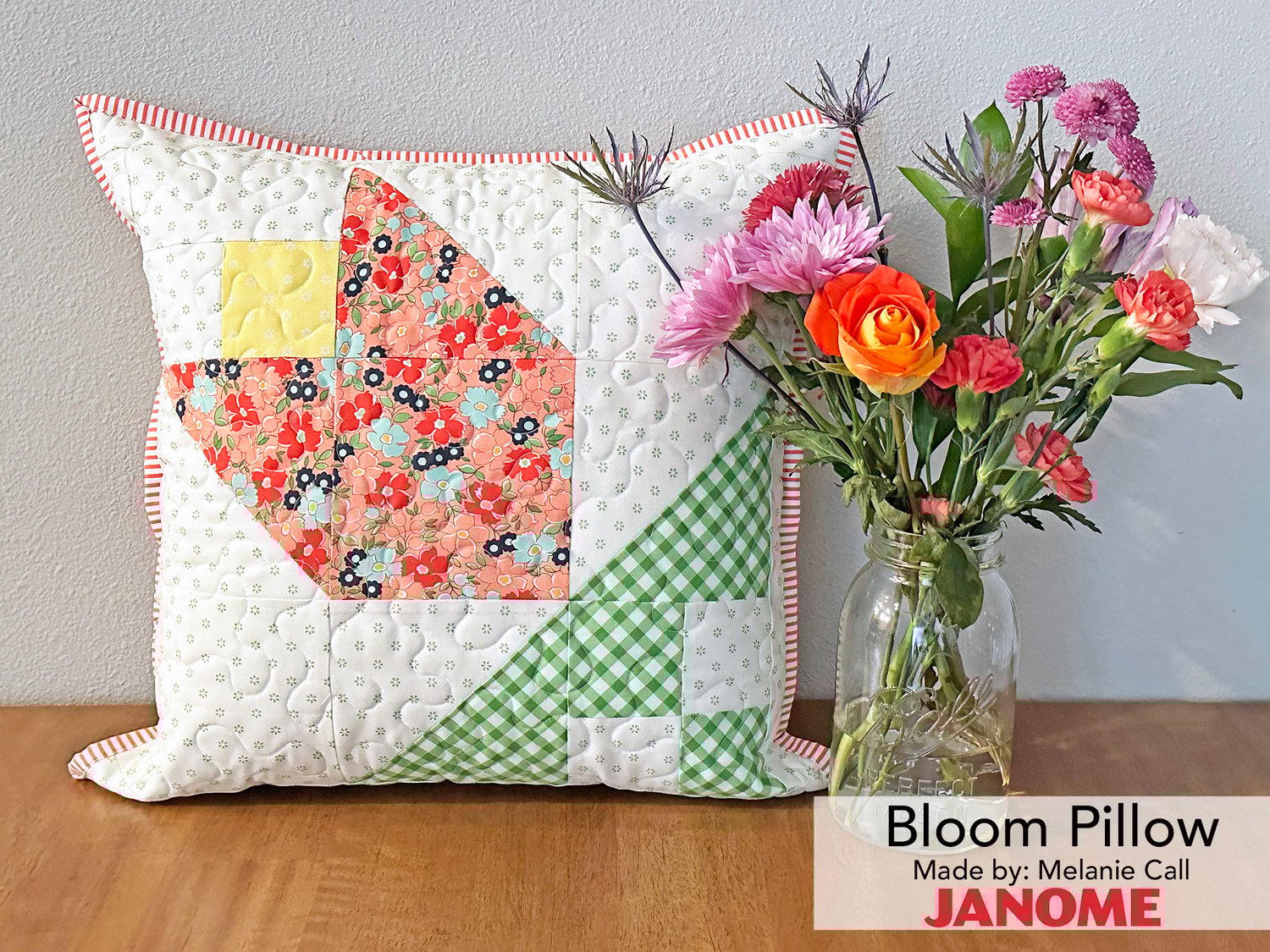 Details on A Bit of Scrap Stuff Blog: https://abitofscrapstuff.blogspot.com/2026/04/janome-tutorial-bloom-pillow.html