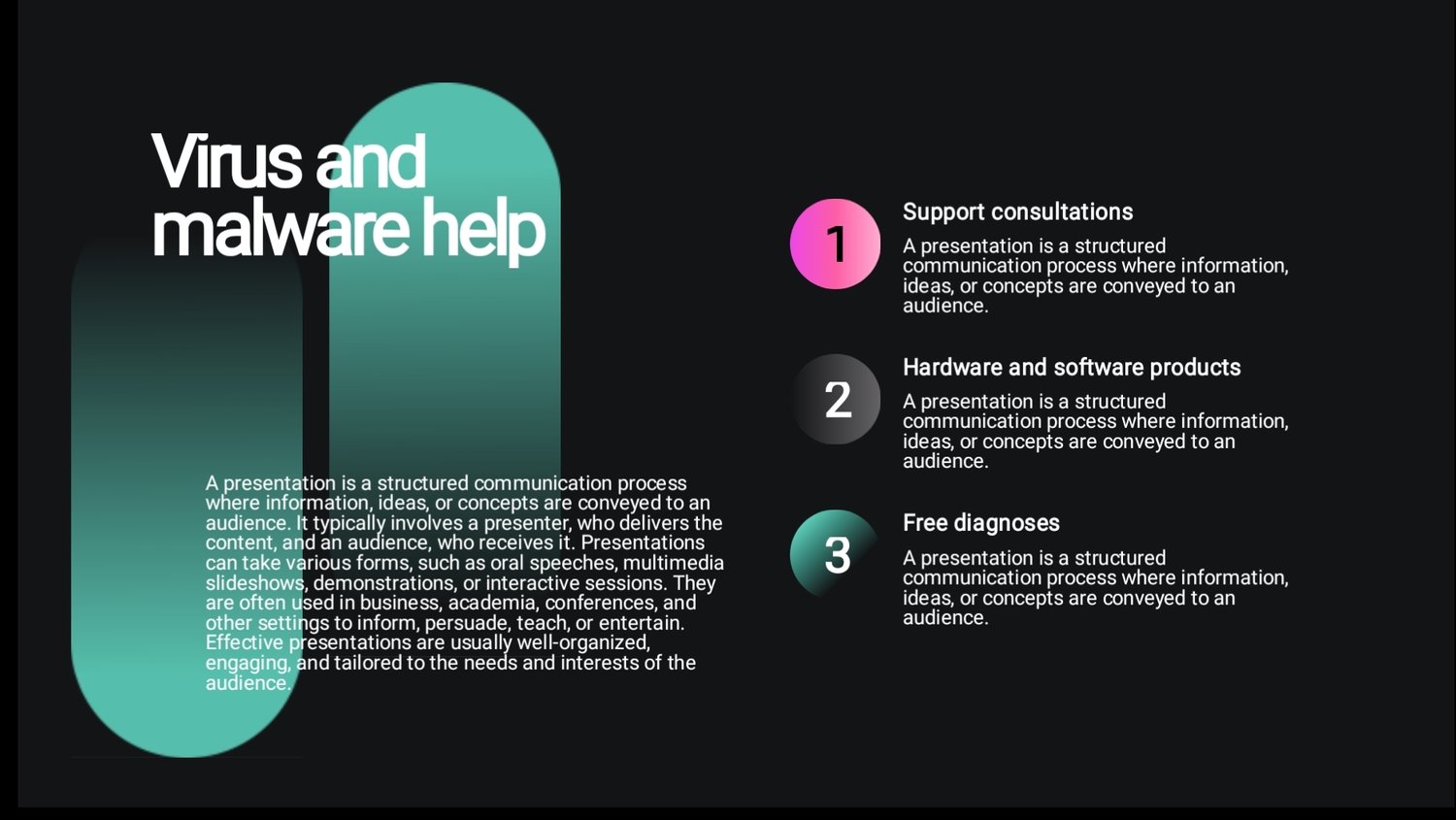 This modern presentation template includes 19 professionally designed slides, perfect for tech companies, startups, digital services, and business presentations.