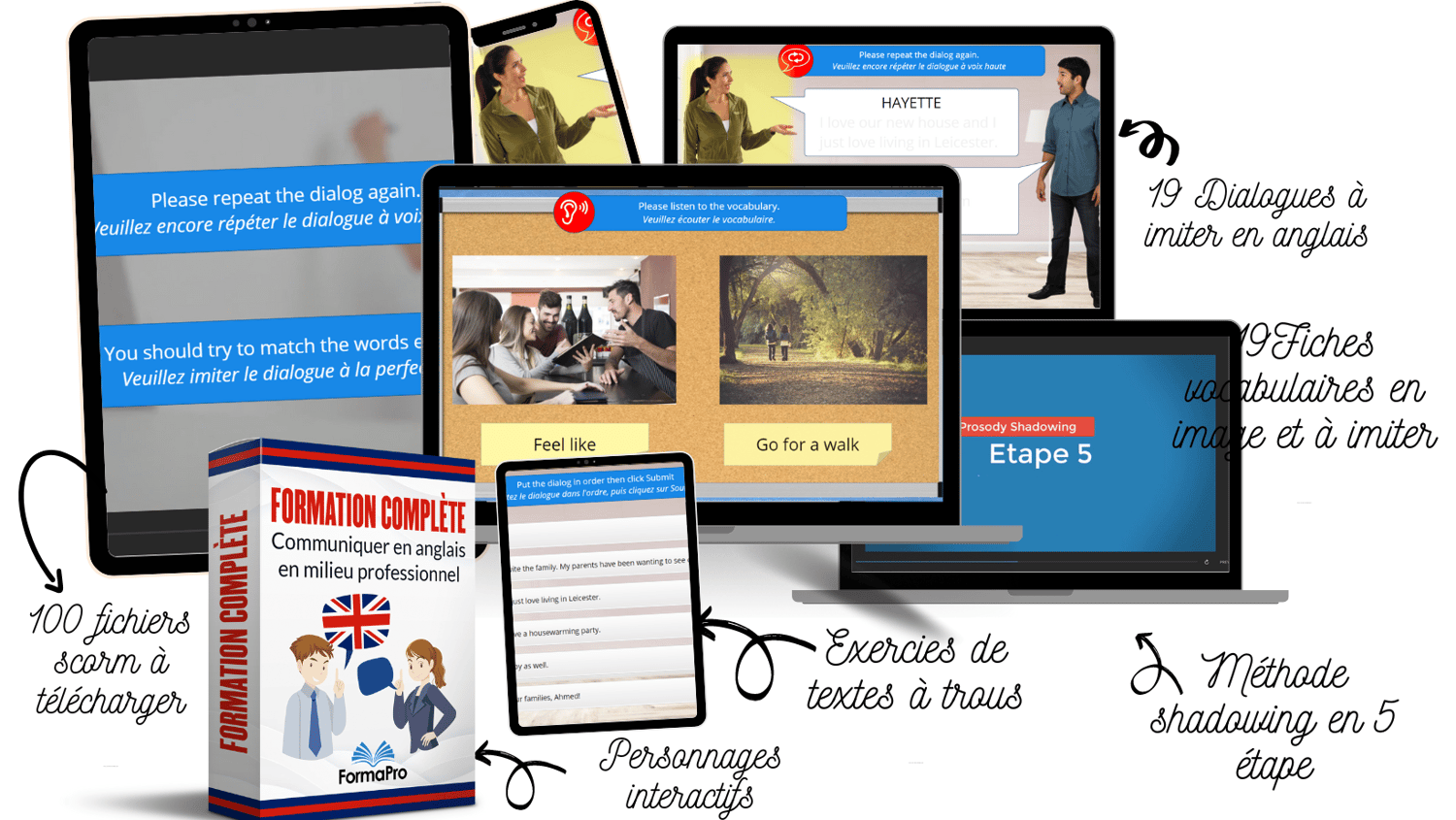 Avec cette formation en marque blanche , vous pouvez l'utiliser au sein de votre centre formation afin d'enseigner l'anglais professionnel.