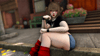 DUE TO SKIRT PHYSICS BEING SKIRT PHYSICS THERE IS CLIPPING WHEN SITTING DOWN