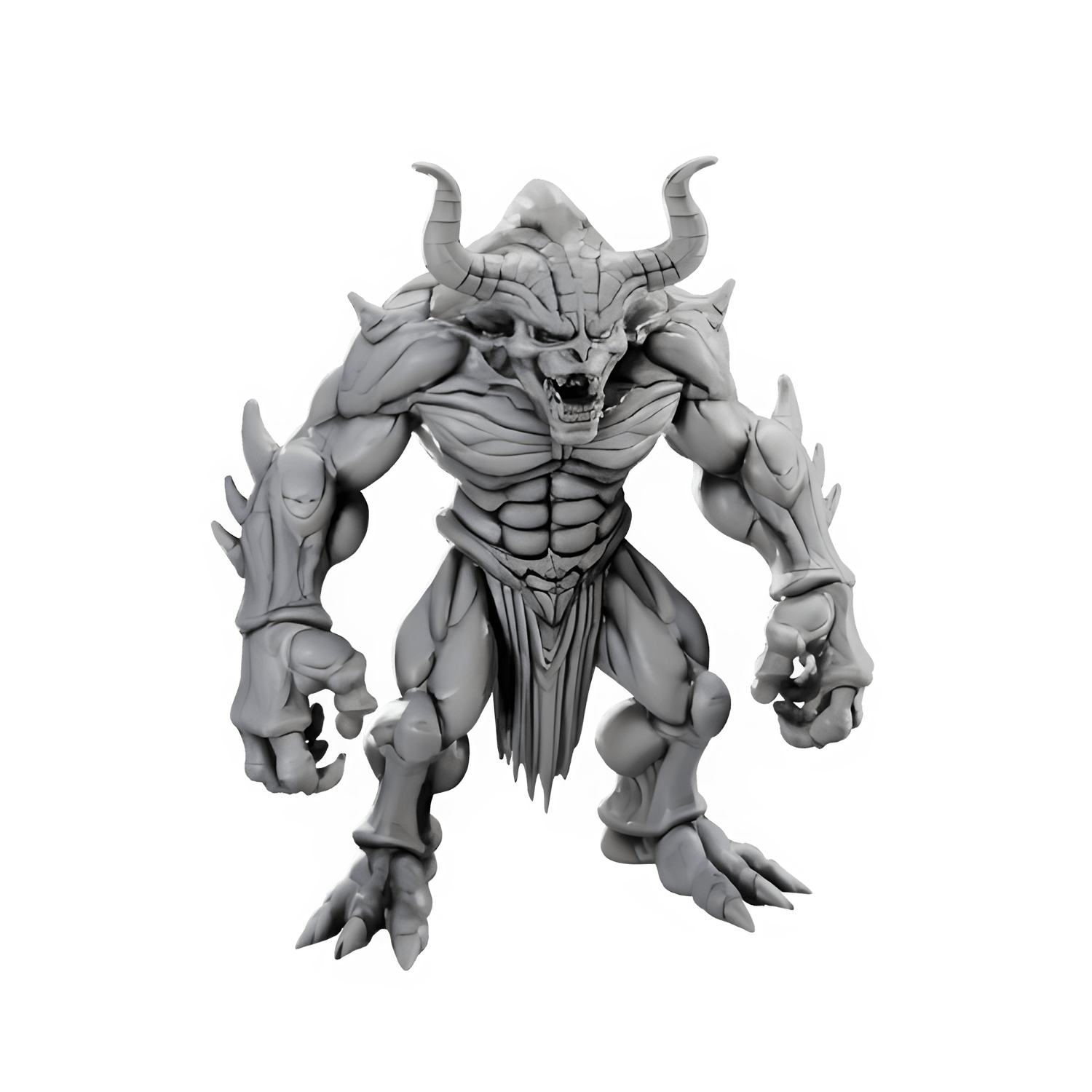 This fierce, muscular demon-like figure with large horns, sharp claws, and defined muscle details is perfect for fans of fantasy and mythical creatures. With intricate body features and menacing expressions, this model is ideal as a decorative piece, collectible, or a unique addition to tabletop RPGs. Its dynamic pose and sharp details bring a sense of power and intensity to the character, making it a standout in any collection.