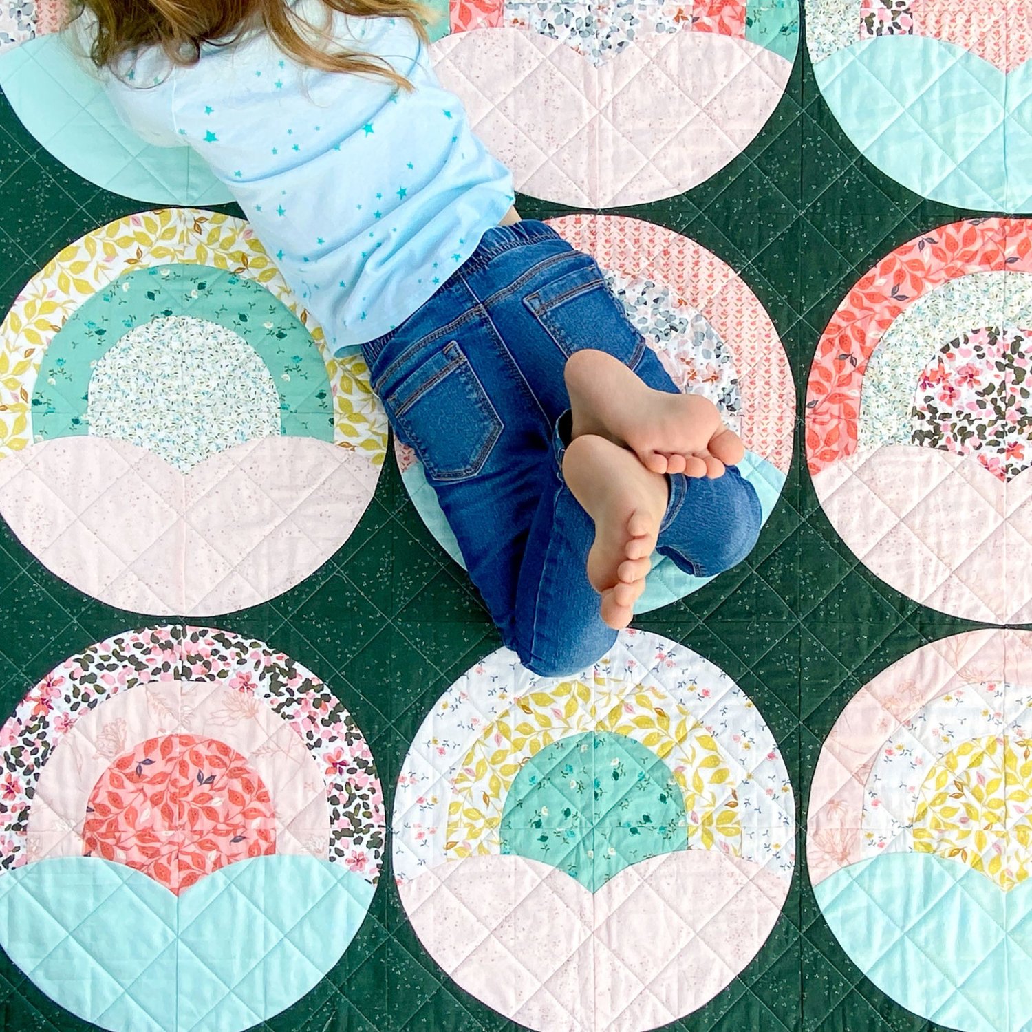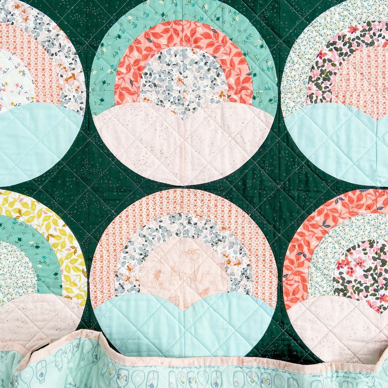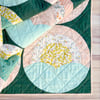 - Binding: Peachy pink floral cotton that ties the whole quilt together