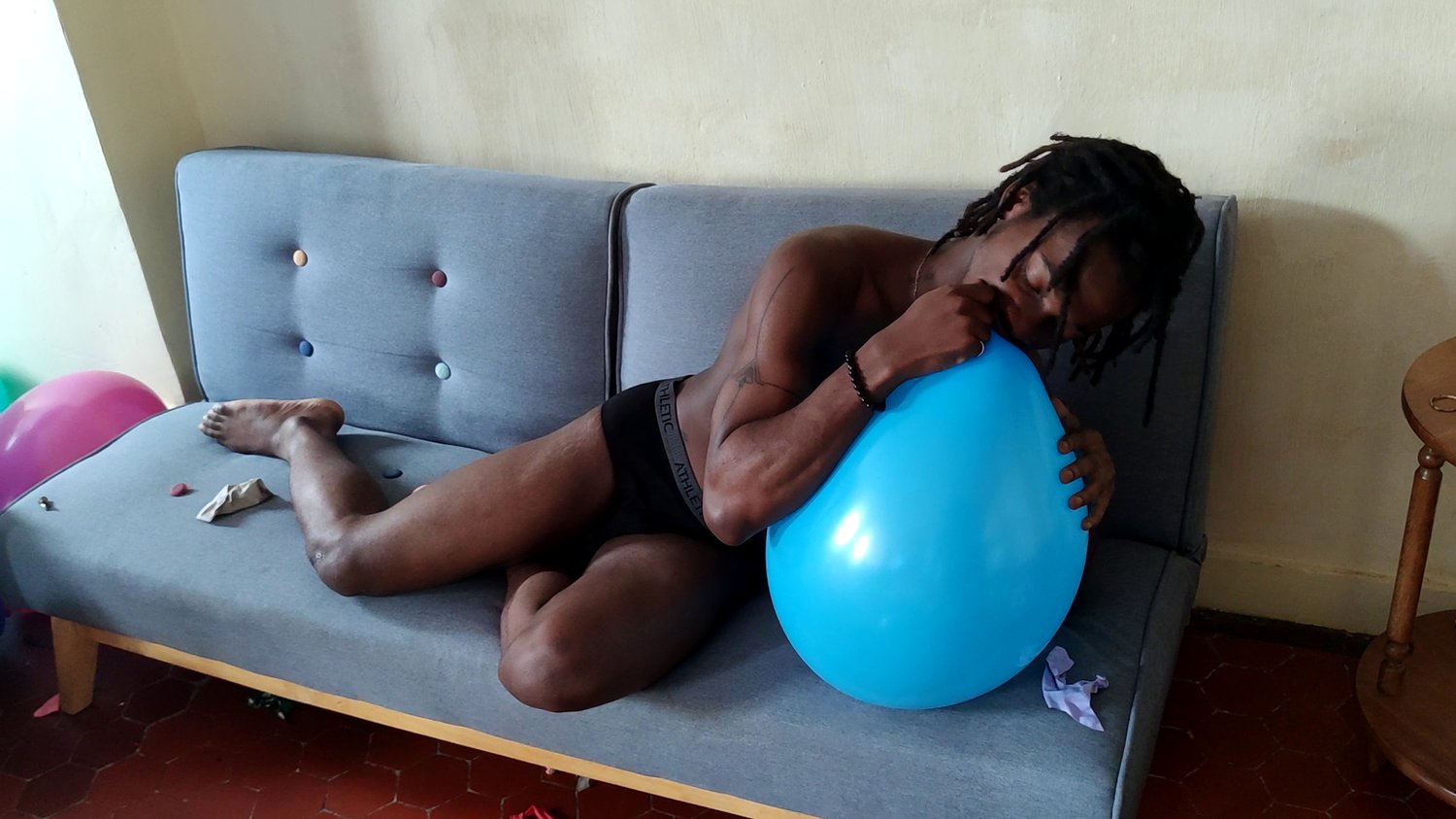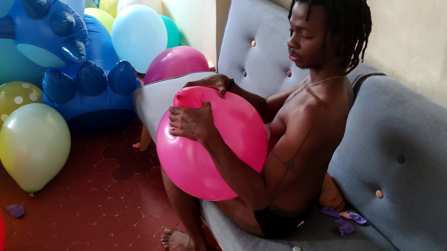 For his last video the sexy cute twink Christopher blow and burst balloons.