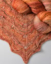 Sometimes you find that perfect skein of yarn and need to cast something on, but can’t find the right pattern. This shawl, with its relatively simple undulating pattern, will play nicely with many of those skeins, particularly the semi-solid and tonally variegated varieties. The leafy pattern will make you feel right at home while walking along a country lane, or possibly meeting an exciting new neighbor.