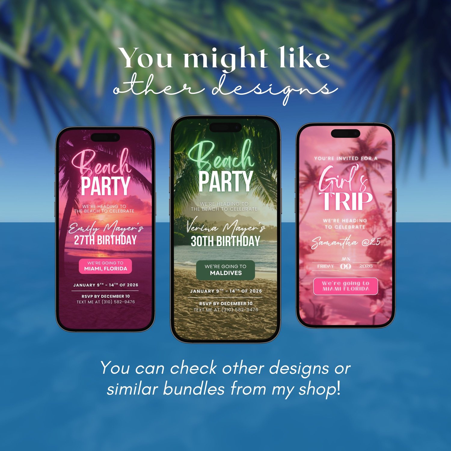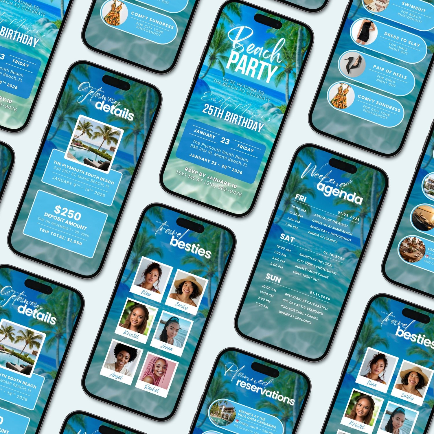 Perfect for birthday weekends, beach parties, bachelorette trips, or summer getaways, this digital itinerary and invitation helps you plan and share your beach weekend in a fun, aesthetic, and organized way.