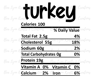Add a dash of Thanksgiving humor to your holiday projects with this "Turkey Nutrition Facts" transparent PNG! Featuring a whimsical and fun take on a classic nutrition label for turkey, this design is perfect for all turkey enthusiasts looking to add a playful twist to their holiday decor or apparel. With its bold and clear design, it's the ideal choice for a range of crafting and gift-making projects.