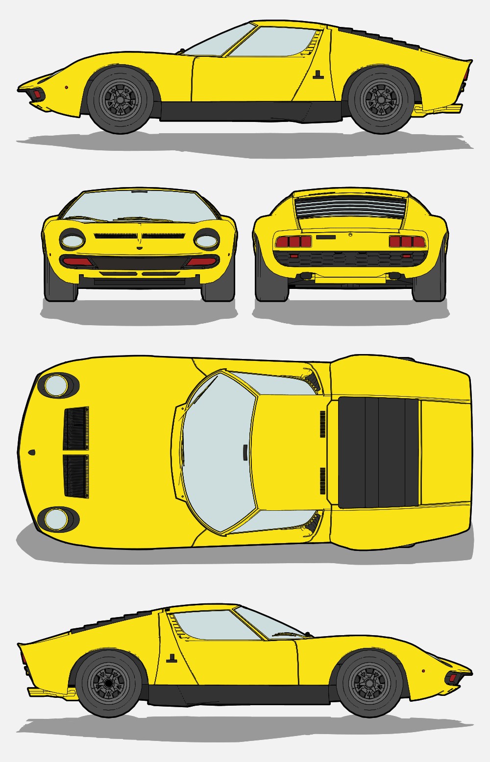 1971 Lamborghini Miura Car Blueprint PDF SVG Vector File.