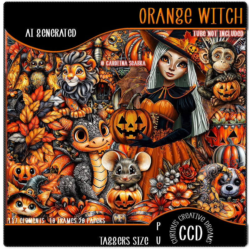 Orange Witch Is a Match Kit For Carolina Seabra Tube Orange Witch . You can find at Queen Uriels Store HERE This Kit comes with 113 Elements , 12 Frames ,20 Papers .The Tube Is Not Included In the Kit . AI Elements Are Included In The Kit . Taggers Size , Personal Use Only