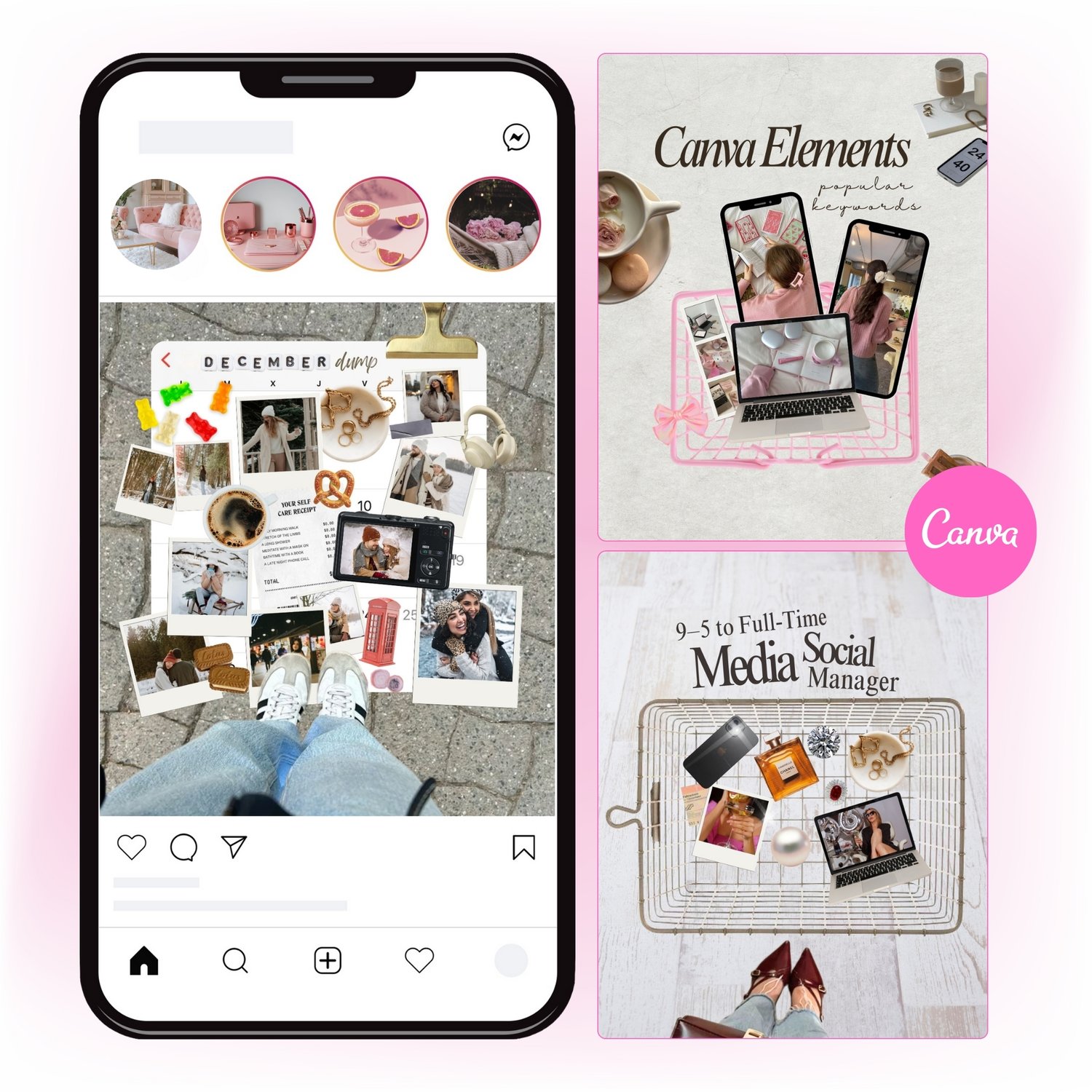 Perfect for photo dumps, digital scrapbook and carousel cover posts, these templates help you present your content in a way that looks intentional, scroll-stopping, and brand-ready.