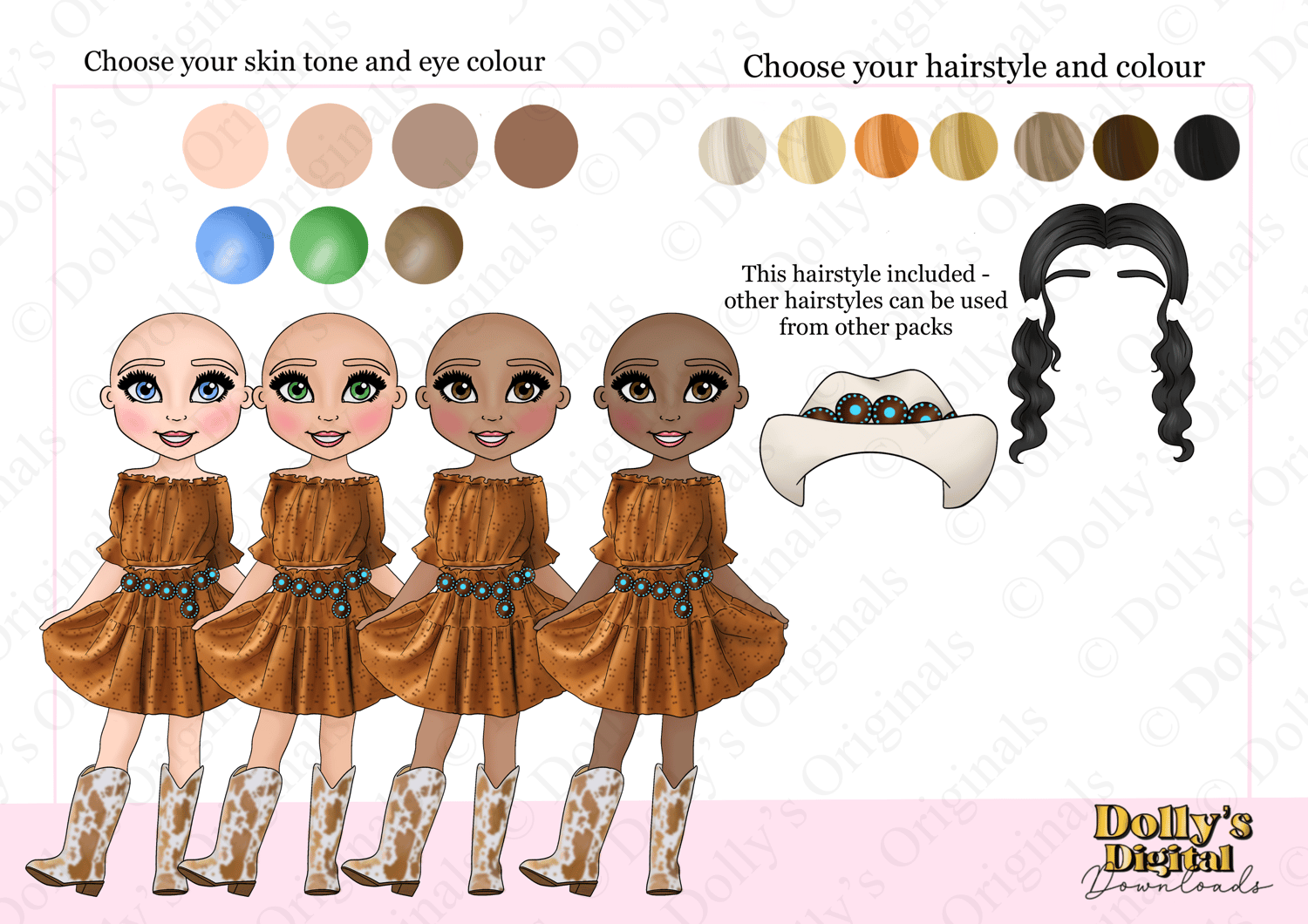 Instant digital download of our Cowgirl Toddler Doll Bundle PNG (20 PNG’s)