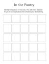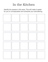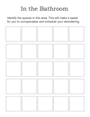 In recording the spaces in each room, you will essentially be creating a map of where things are kept. There is enough room in the boxes to describe the contents of each smaller space in your rooms. Add the maps to your household control journal and use them over and over again.