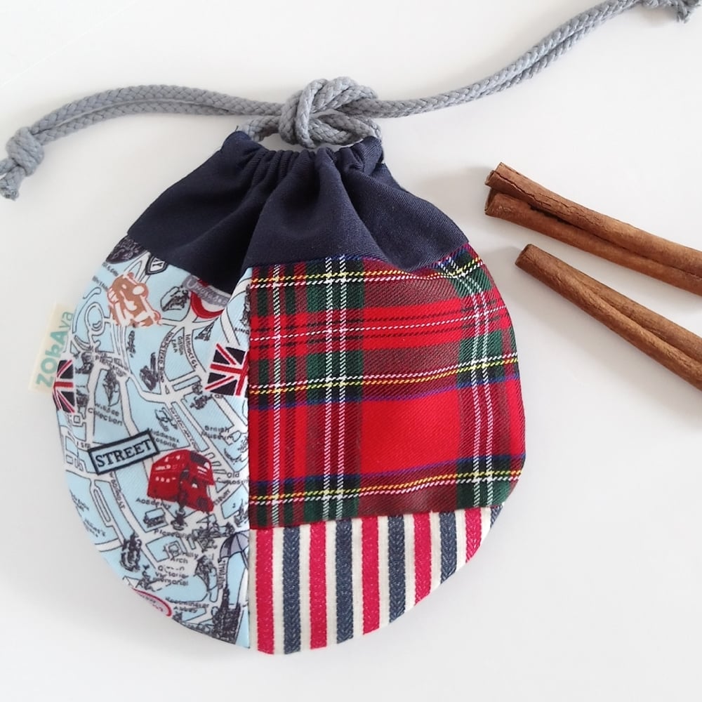 Round Patchwork Drawstring Bag (British-theme)