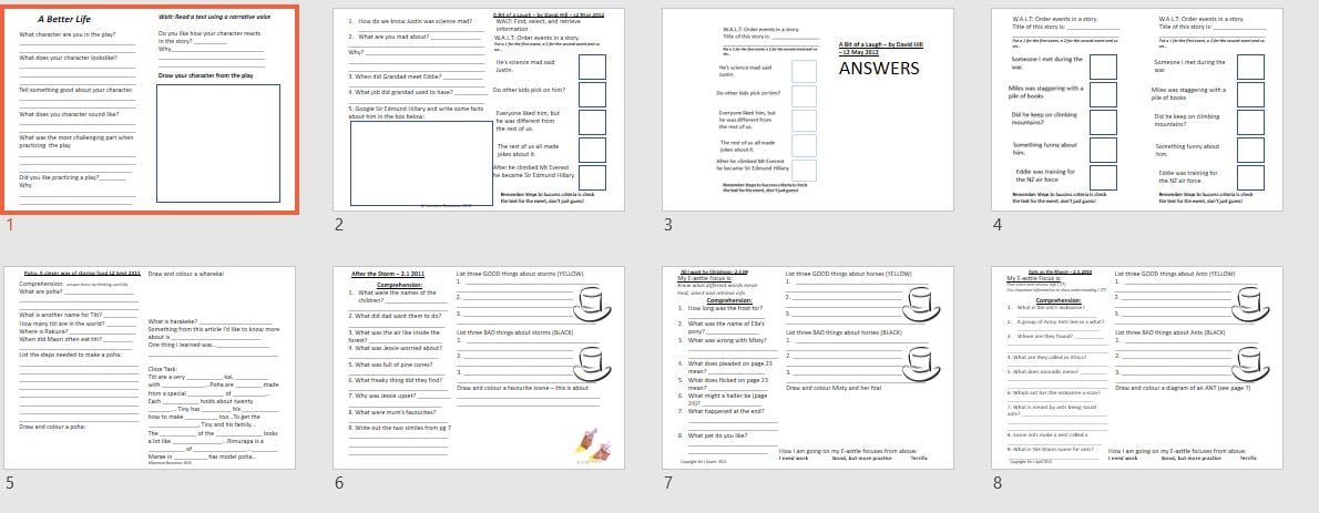 Editable collection of response sheets for different titles of the NZ School Journal.