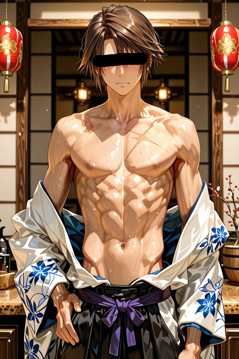 日本の正月をテーマに、着物を着用している男性を、キャラクターごとにお任せ作成しました。男らしいキャラクターの魅力を思い切って表現しました。