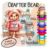 Cute teddy bear business logo, crafter bear, main graphic plus 12 hoodies, mix n match. Sublimation, print, personalise. PNG.