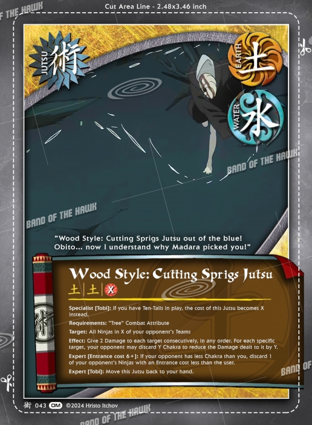 j043 - Wood Style Cutting Sprigs Jutsu Jutsu card from our Obito & Madara card set for Naruto CCG.