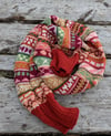 The finished scarf is 6.5" (17 cm) wide and 62.5" (156 cm) long
