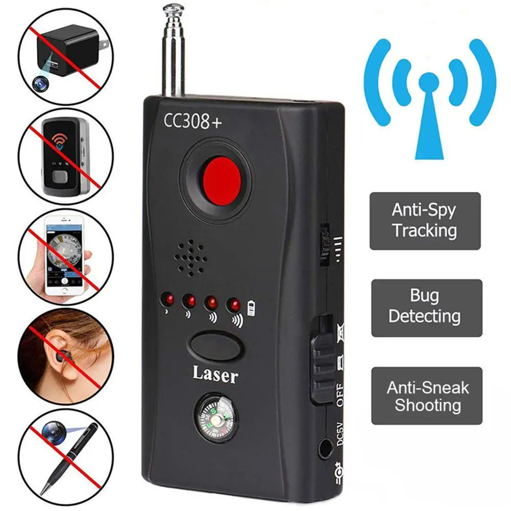 📷 Hidden Lens Detection: Special optical filters detect camera lenses up to 10m range.