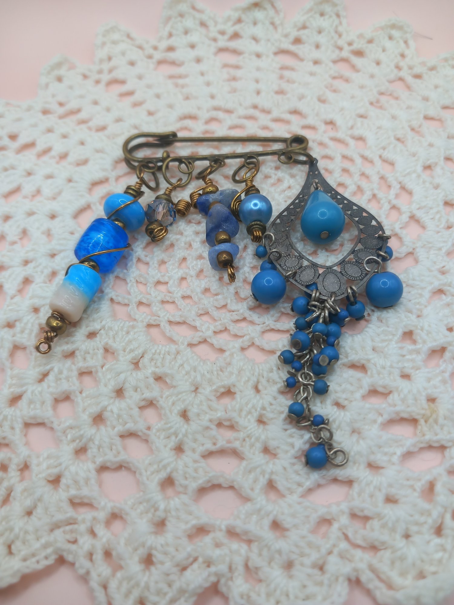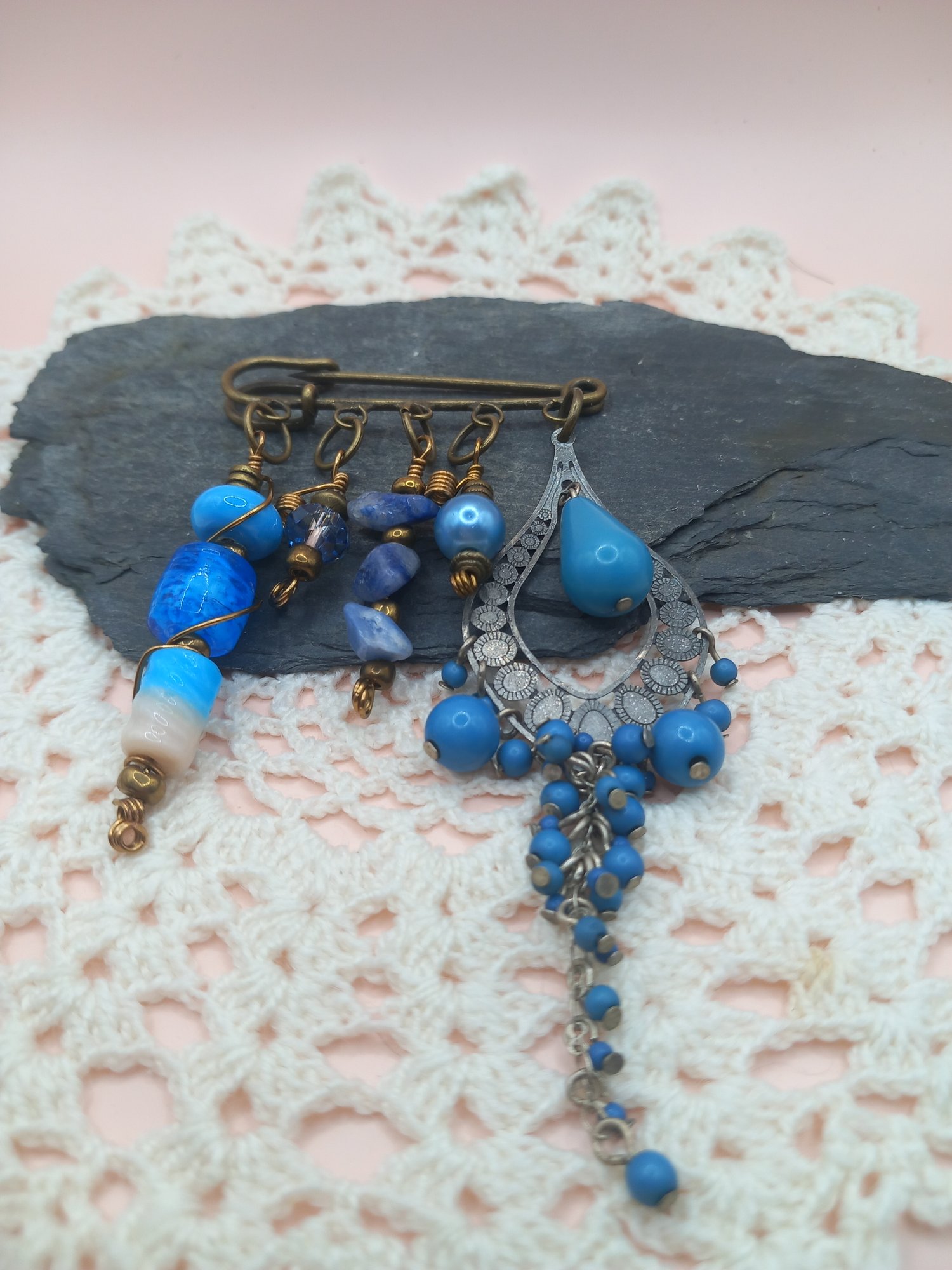 OOAK Amulet Kilt Pin Brooch made with vintage, handmade and natural pieces, wire-wrapped - each one unique