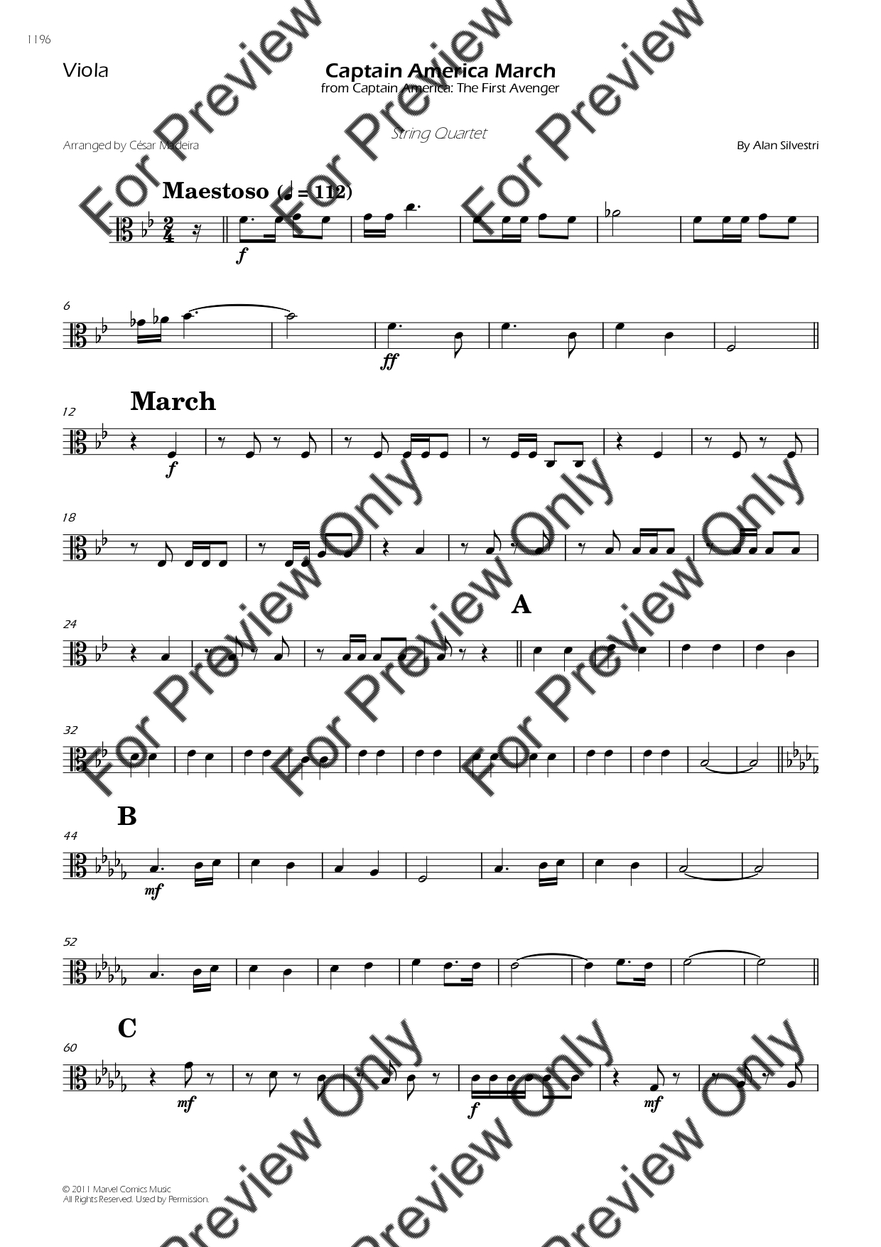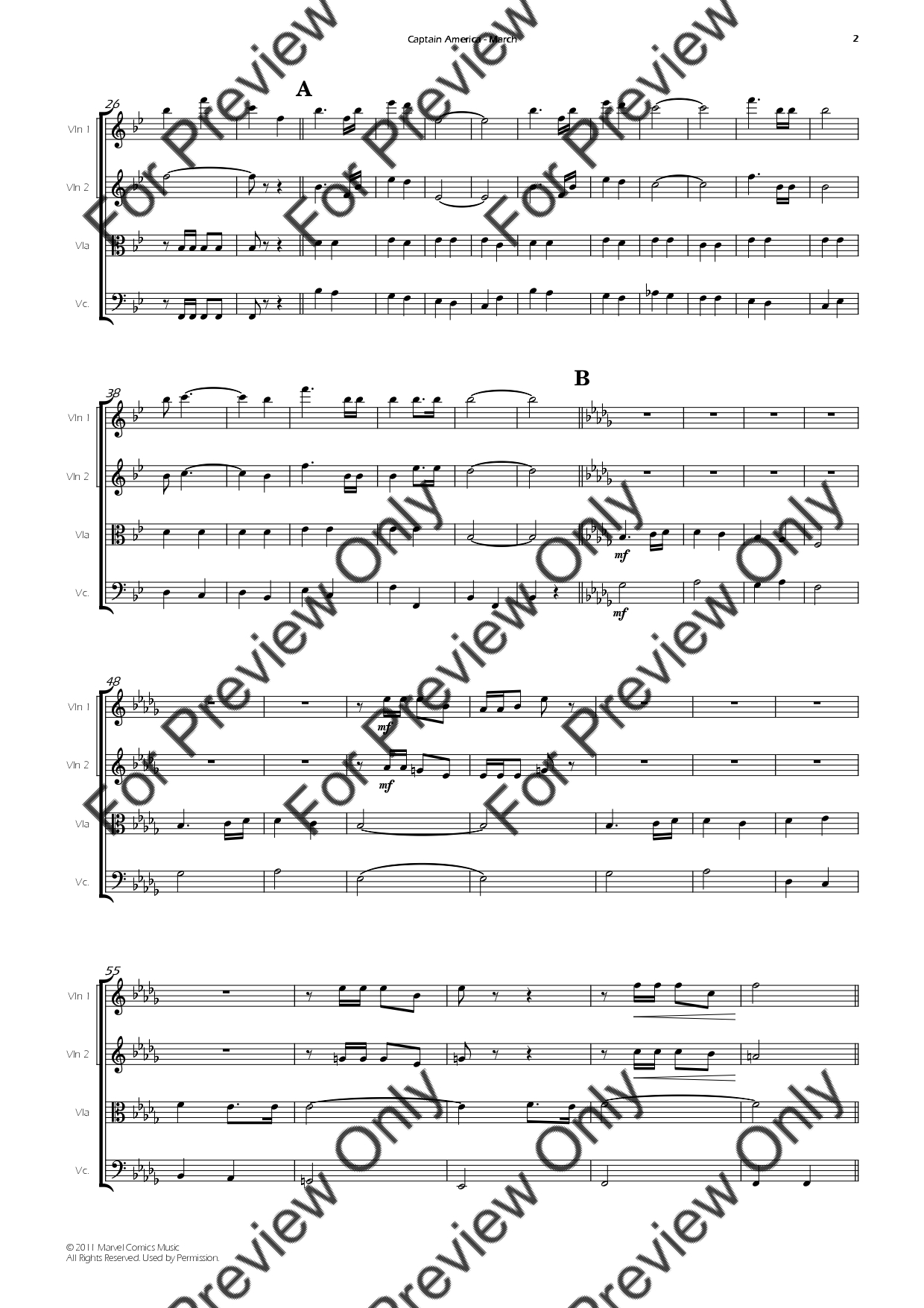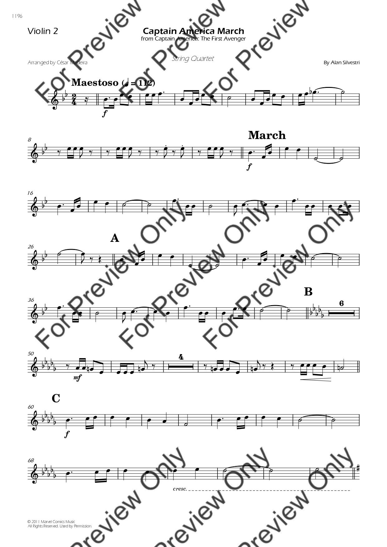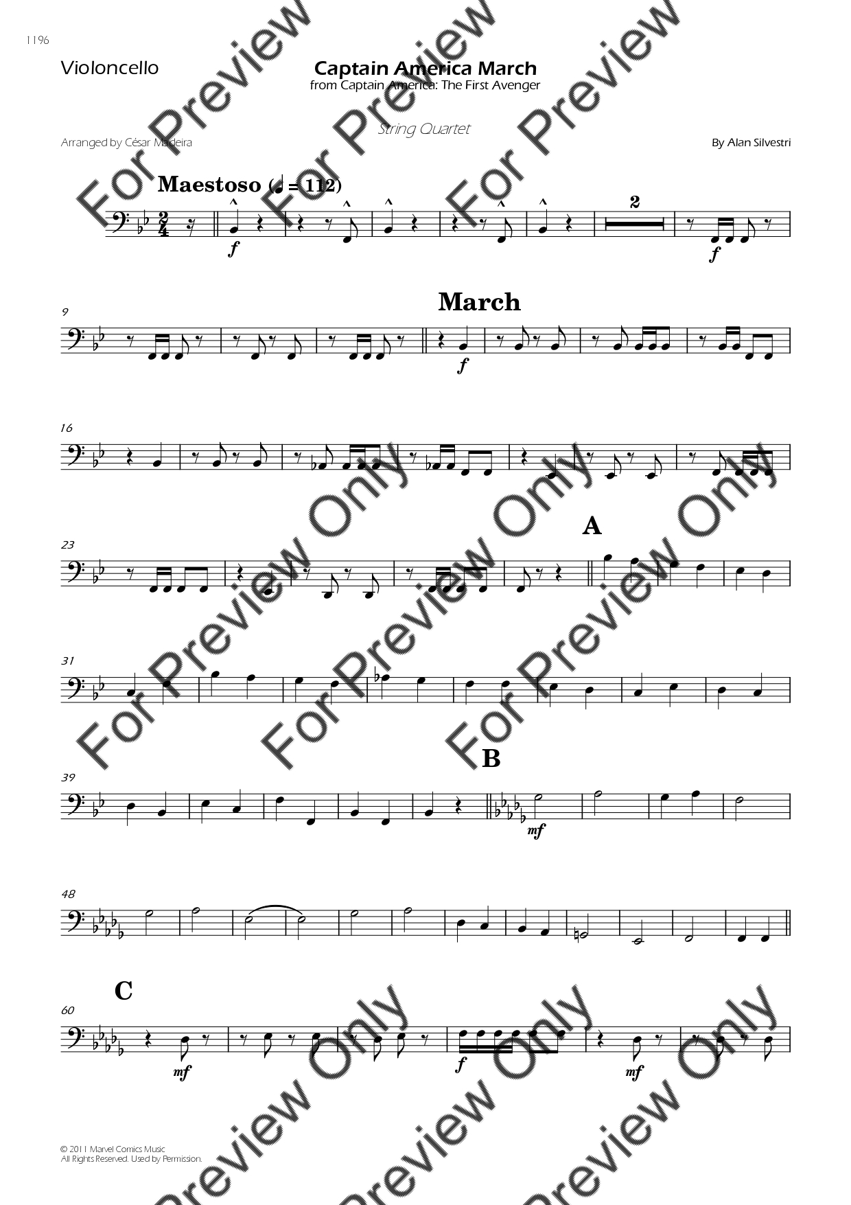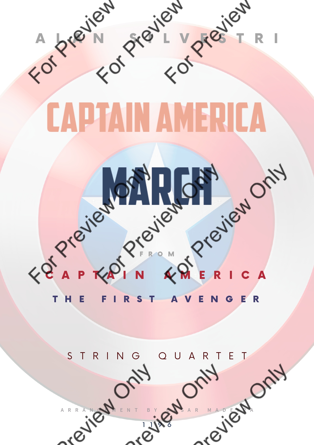 Captain America March by Alan Silvestri. Arrangement for String Quartet - Violin 1, 2, Viola and Violoncello. With Full Score and Individual Parts. Have fun!