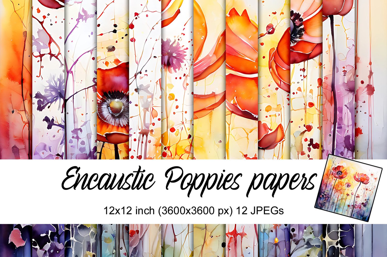 Encaustic poppies papers is collection of 12 digital images, in size of digital paper – 3600 x 3600 pixels (or 12×12 inches).