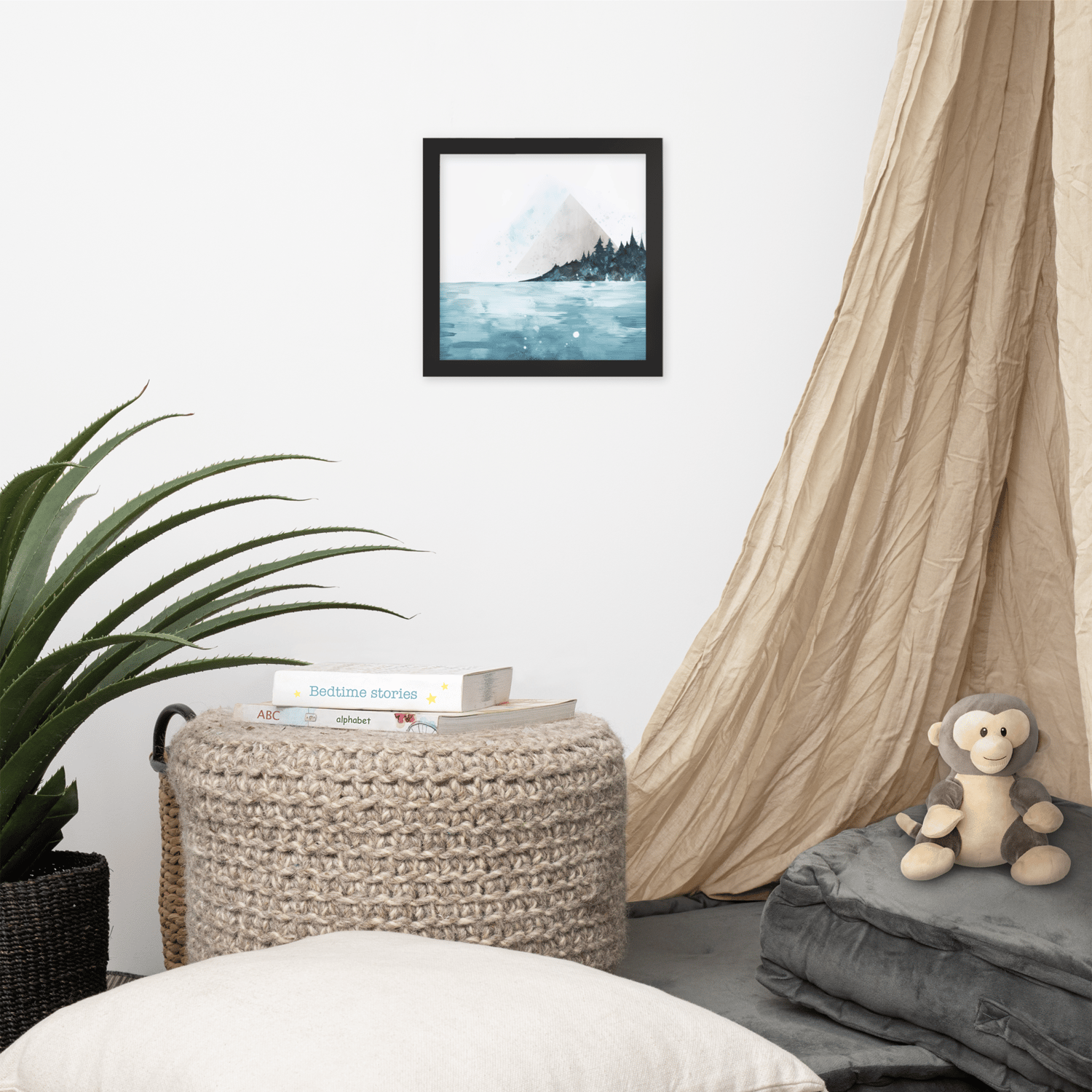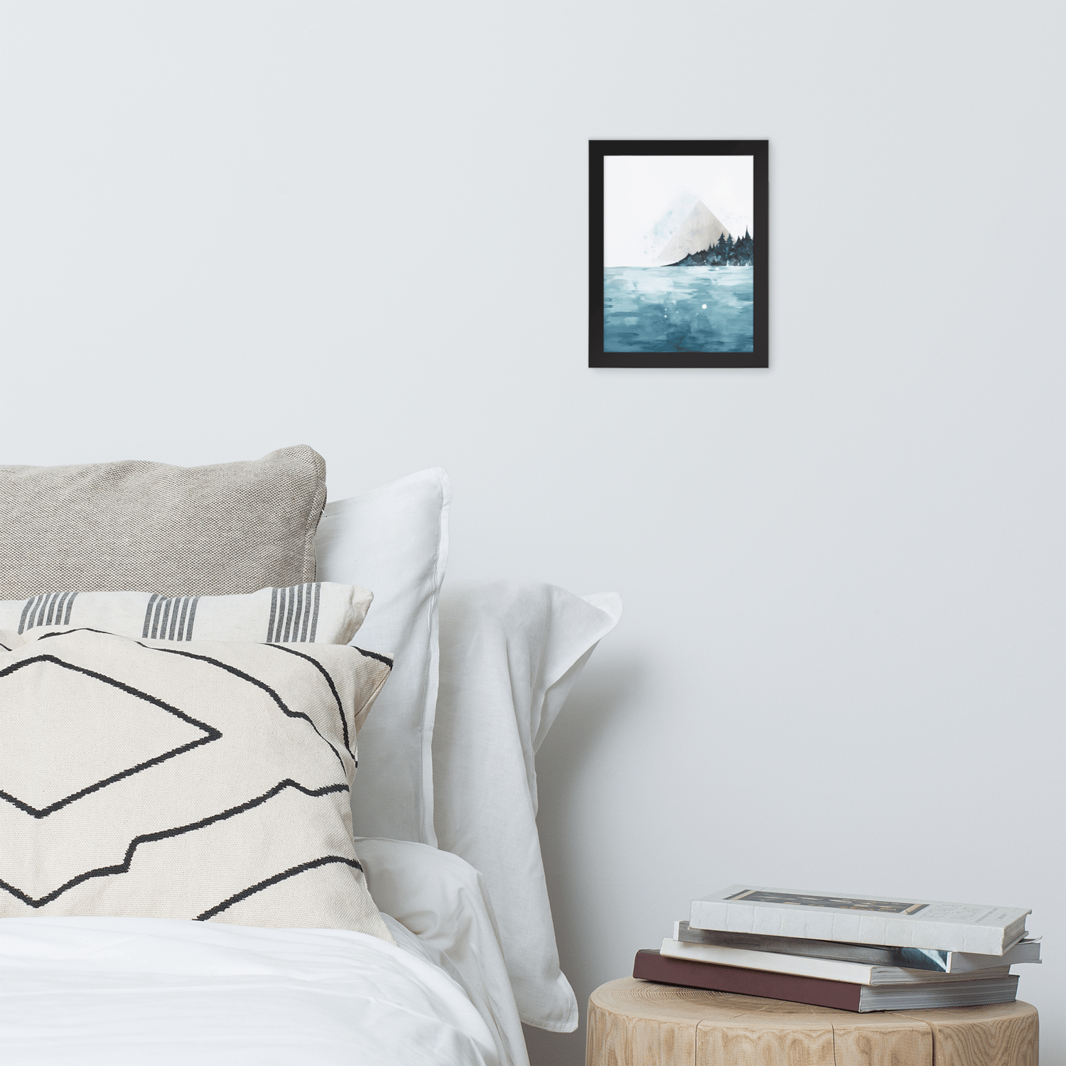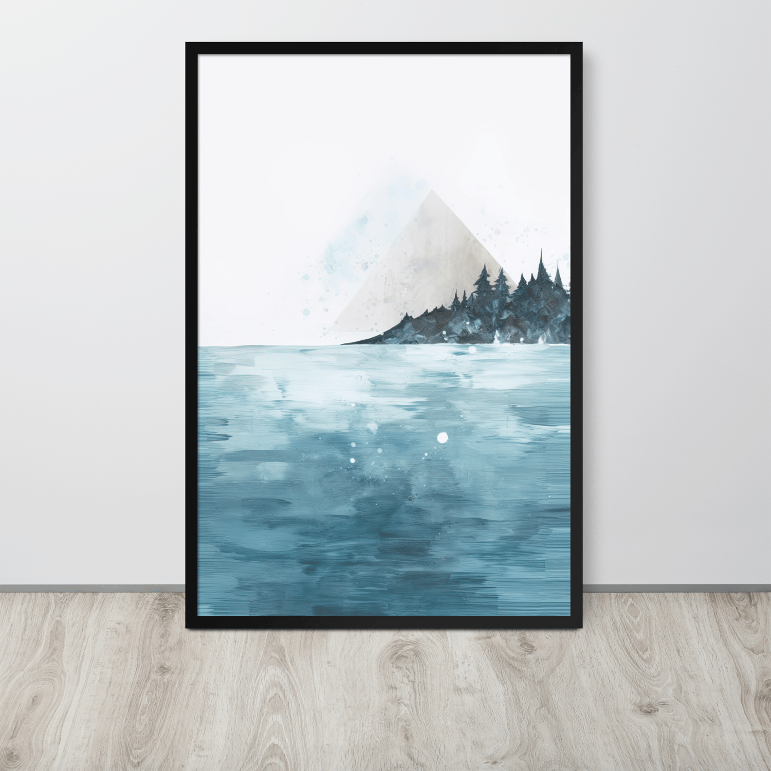 Azure Dreamscape is a beautiful watercolor painting that captures the stunning beauty of nature. The painting features a blue ocean on the bottom half, with trees visible on the shoreline on the middle right, and a triangular mountain in the distance. The deep blues of the ocean and shoreline, combined with the beige tones of the mountain, create a mesmerizing and captivating artwork that will transport you to a peaceful and serene place. The digital file can be downloaded and printed at home, providing an affordable and convenient option for displaying this stunning artwork.