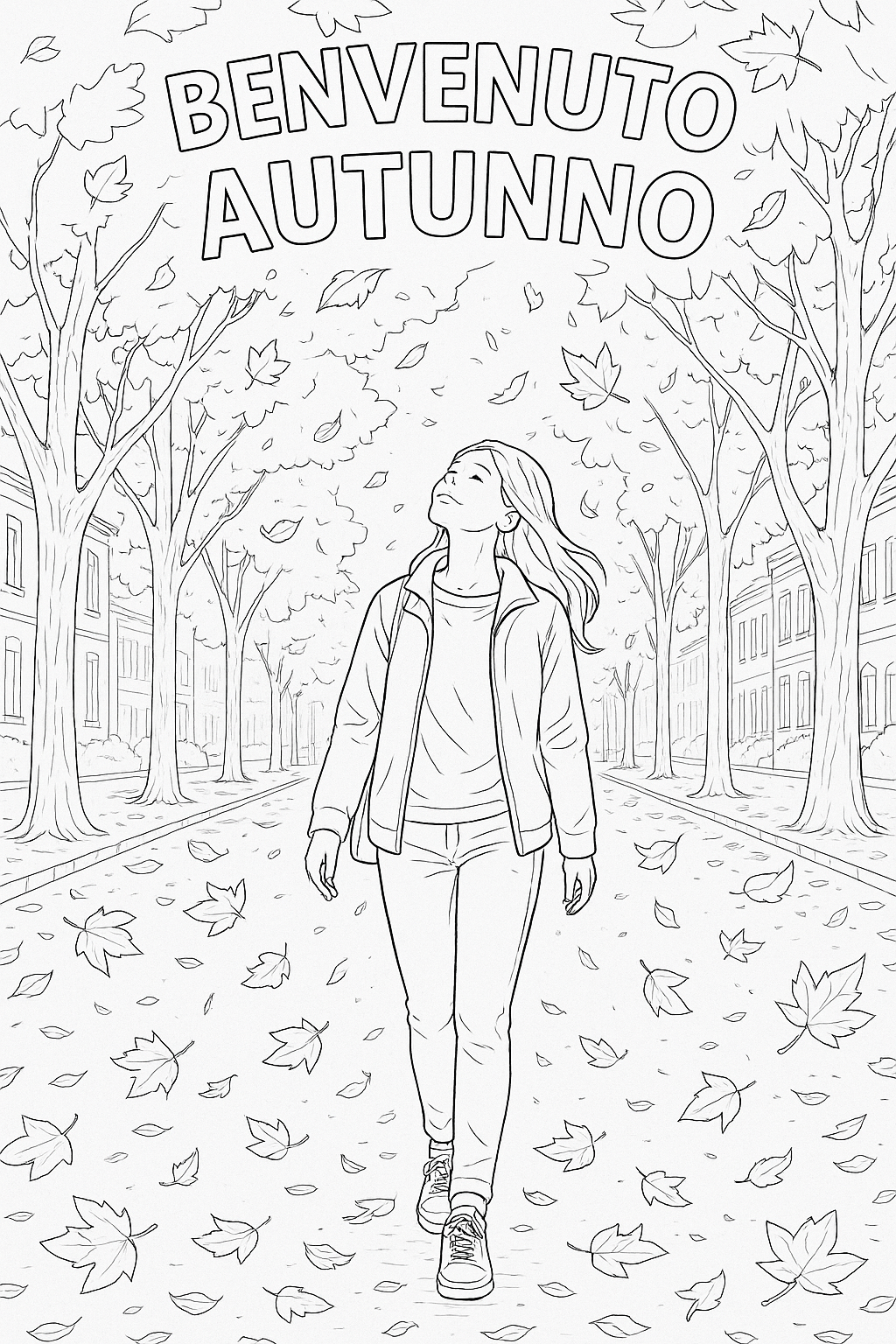 Walking through the foliage – “Welcome Autumn” coloring page 🍁
