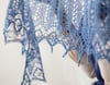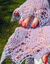 Dewdrop Paths is a top-down, curved triangle shawl with an easy lace pattern. It is designed to be simple but pretty travel knitting with an easy to memorize stitch pattern. The piece is worked flat from the top down with the edging knitted on sideways. The pattern is provided in both charted and written form.