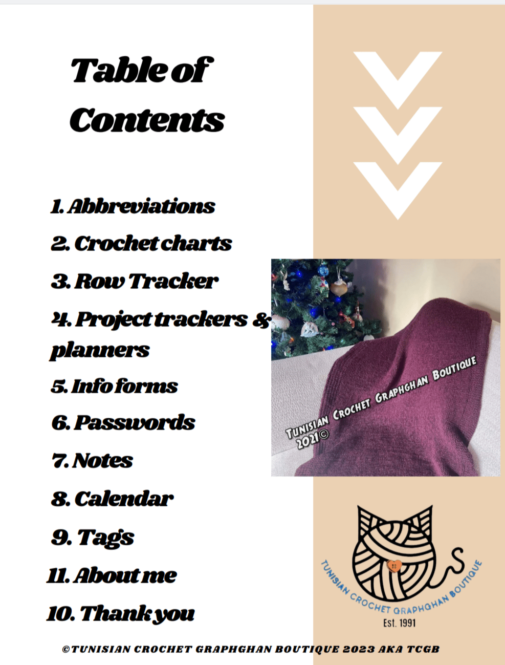 The content of this pdf ebook , details and photos are property of Tunisian Crochet Graphghan Boutique ©, Copying, or sharing of this is not permissible. Please feel free to use this e book to create and track your adventures. Please give Tunisian Crochet Graphghan Boutique credit for design I'd absolutely love to see your product reviews, photos, please tag or link your items with @Tunisiancrochetgraphghanboutique