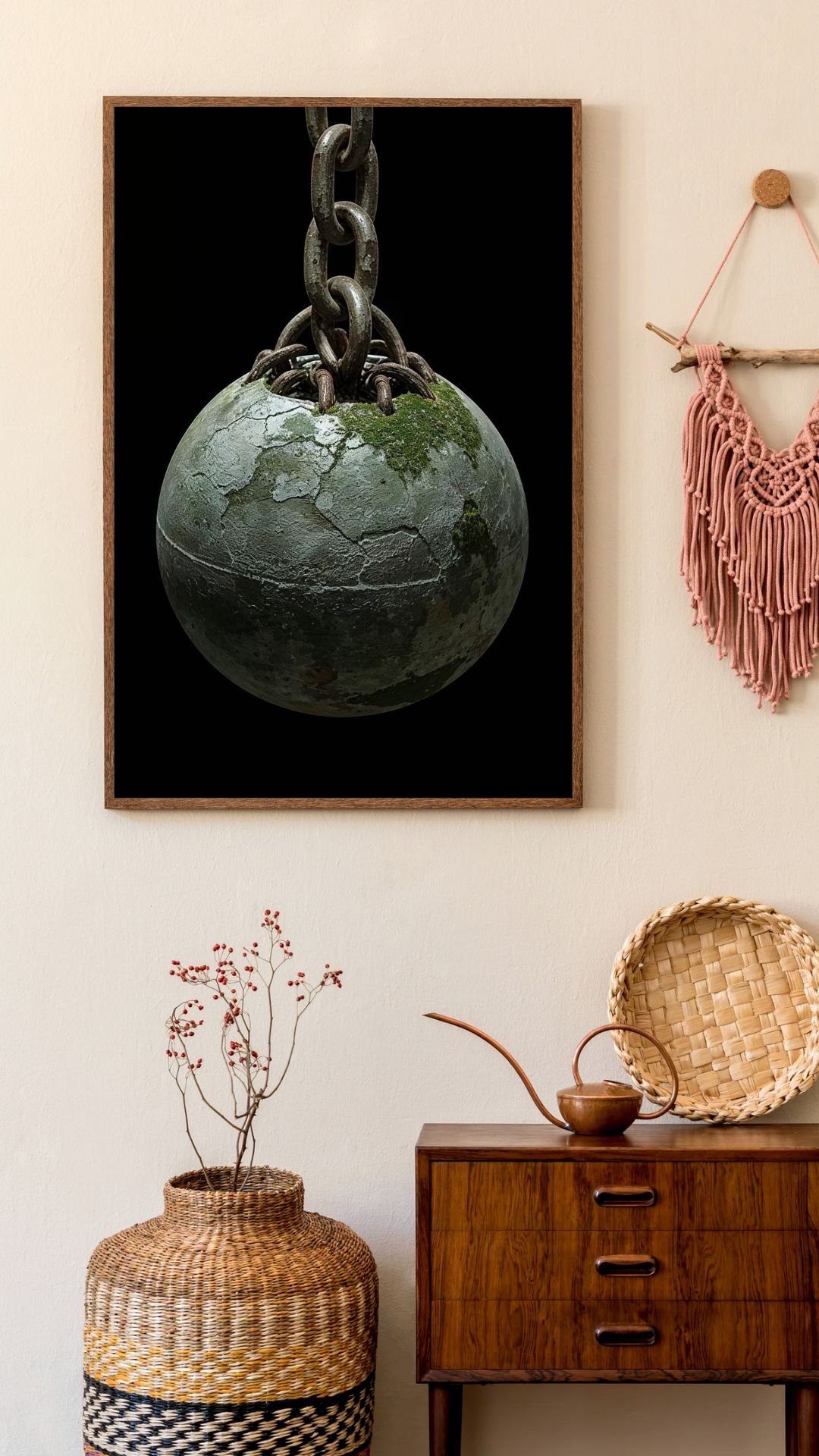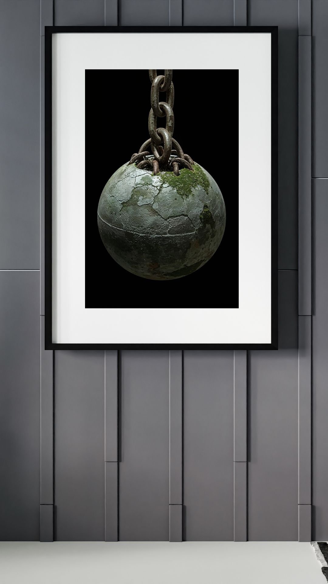 Bring bold, industrial energy into your space with this Grunge Industrial Wrecking Ball Wall Art. This powerful digital artwork features a cracked, wrecking-ball Earth, blending raw textures with dark industrial tones. Perfect for those who appreciate industrial decor, gothic art, and conceptual wall design, this piece captures the dramatic beauty of destruction, resilience, and artful chaos.