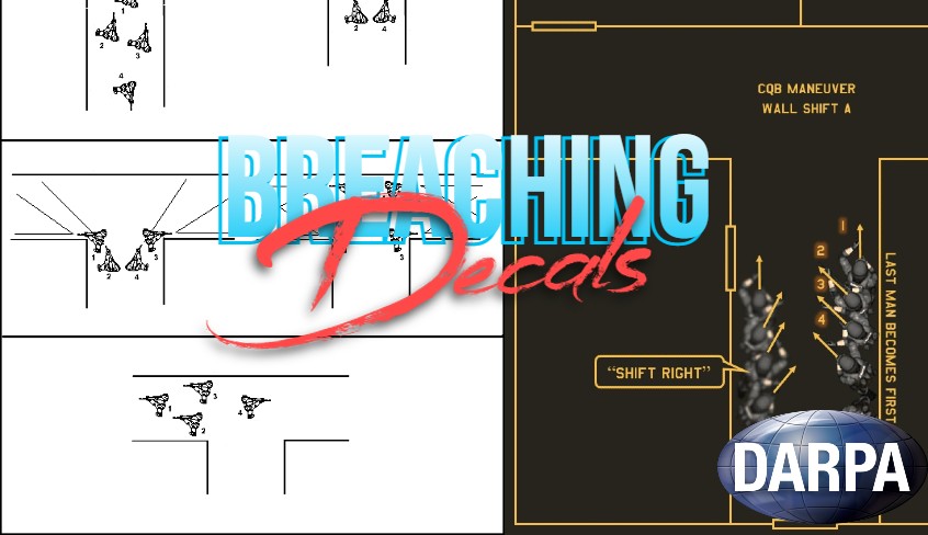 Collection of 18 decals that break down various breaching techniques, tactics, and plans for use in training areas.