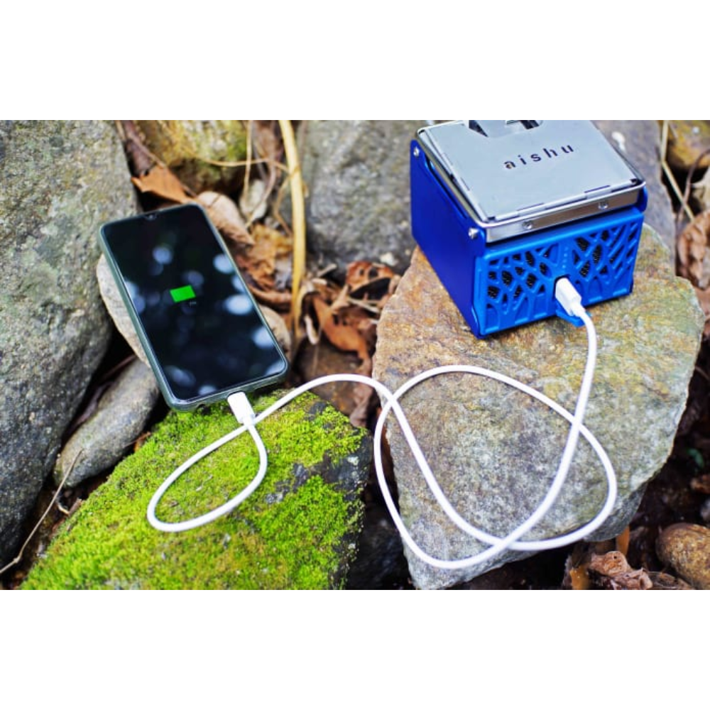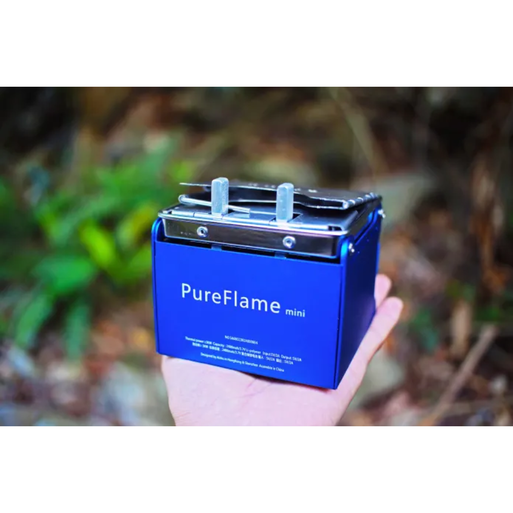 The idea behind FlameCube mini Pro is simple: Using natural resources for fuel such as twigs, pinecones or other biomass found outdoors to build a fire. With this, the thermoelectric generator will turn the heat into electricity! Then use a portion of the electricity to power fans that helps the fire burn cleaner, hotter and keep making electricity.