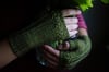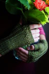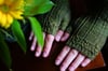 Finished Measurements: 4 ½ (5)”/[11.5 (12.75)] cm circumference (unstretched), to fit 7 (8)”/[18 (20) cm] hand circumference