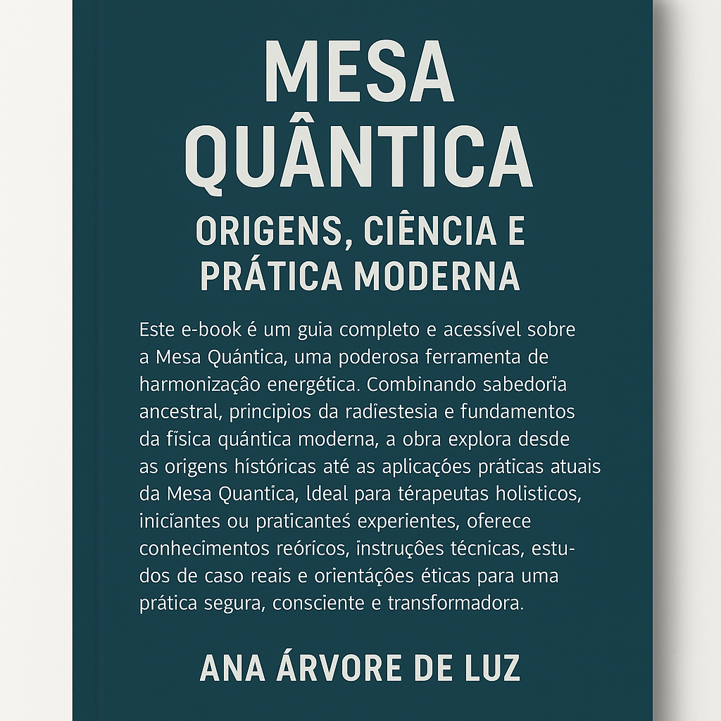 "Mesa Quântica: Origens, Ciência e Prática Moderna" é um guia completo e aprofundado sobre uma das ferramentas mais fascinantes da terapia energética contemporânea. Neste e-book, Ana Rita, terapeuta e canalizadora espiritual, conduz-te numa jornada esclarecedora que une tradição, ciência e prática.