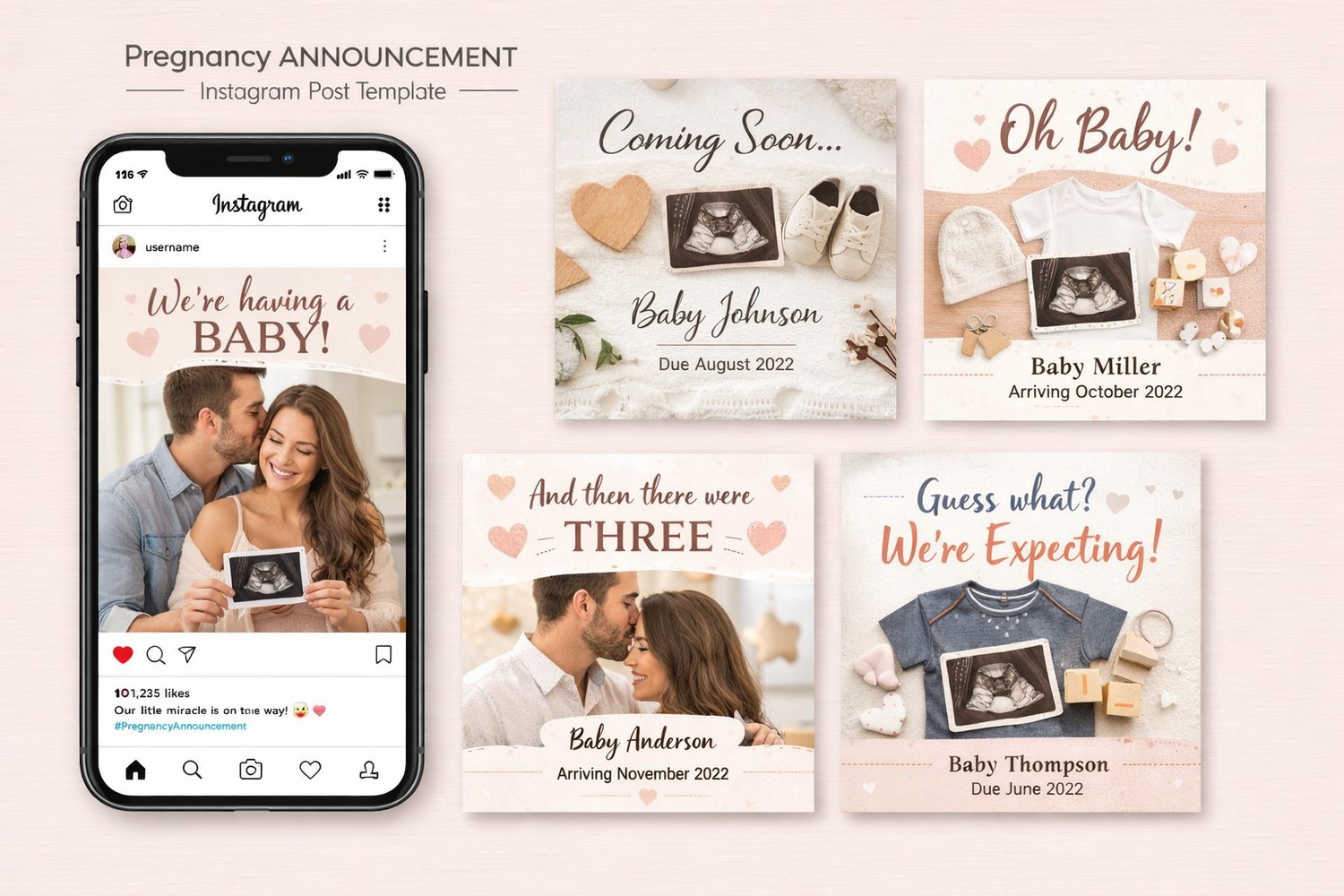 Perfect for: pregnancy reveal posts, baby announcement social media, ultrasound Instagram posts, due date announcements, modern motherhood content.