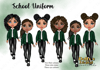 Instant digital download of our Cute School Girl in Green with Black Trousers Uniform with Afro/Braids Hair PNG (54 PNG’s included one background)
