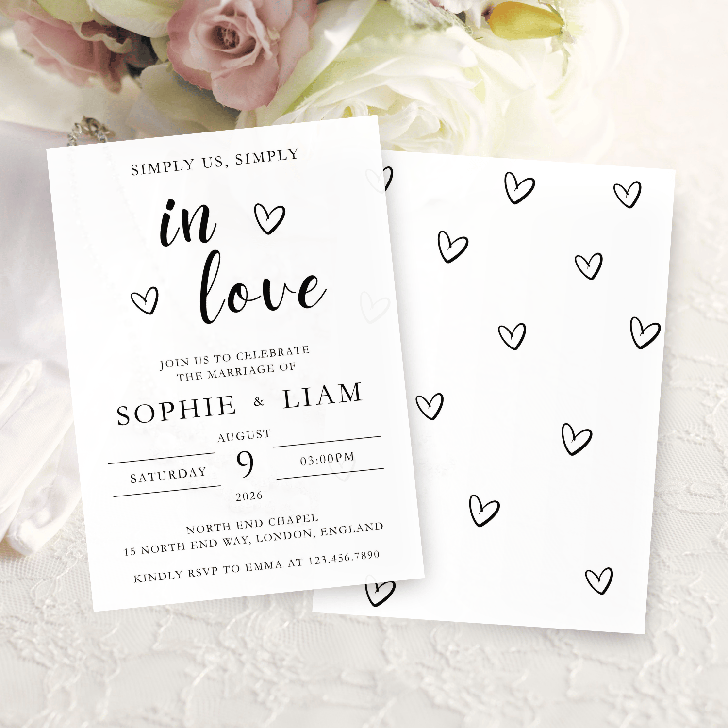 This minimalist heart wedding invitation is perfect for modern couples who love clean, elegant designs.