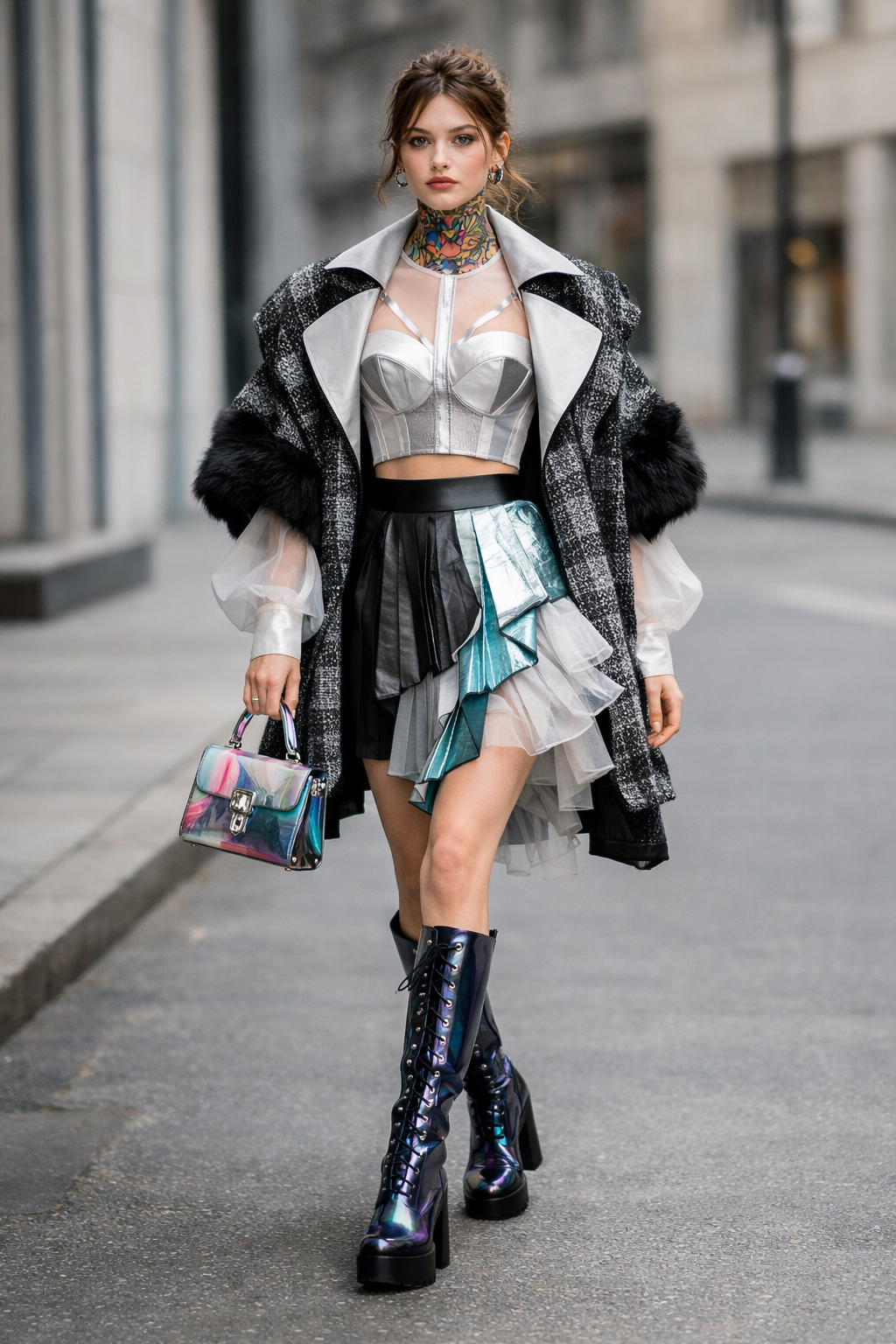 Futuristic fashion on a modern street,
