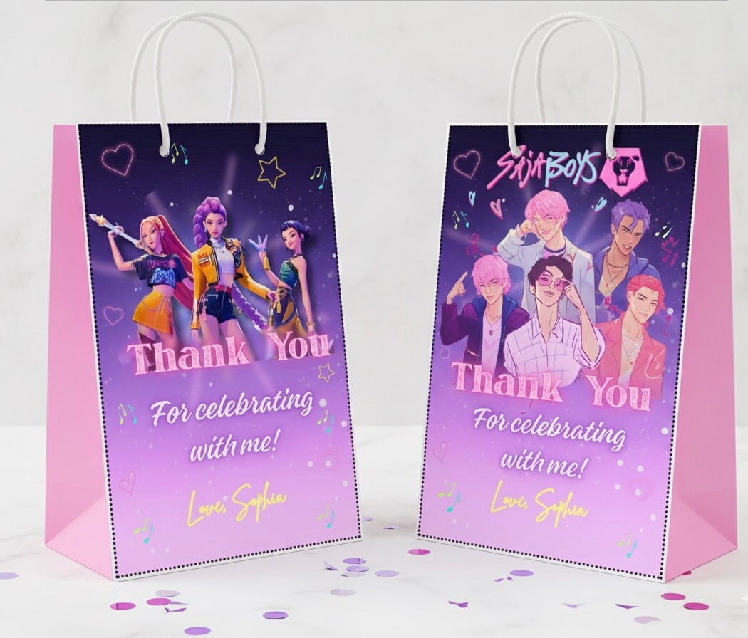 K-Pop Demon Hunter Party Bag Labels, Editable & Printable Thank You Tags Favor Bag Label, Demon Hunters Party Bag Label, Huntrix Party Bag, Saja Boys Party Bag