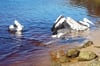 Where tannin-stained rivers meet the patient grace of the wild, a single moment lingers — a pelican unfurling its wings at the edge of untouched Australian shores. The water glows with amber tones, like liquid gold kissed by sunlight, while textured rocks frame the scene with quiet strength.