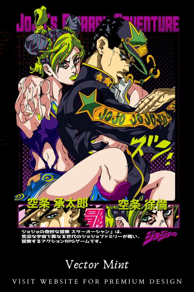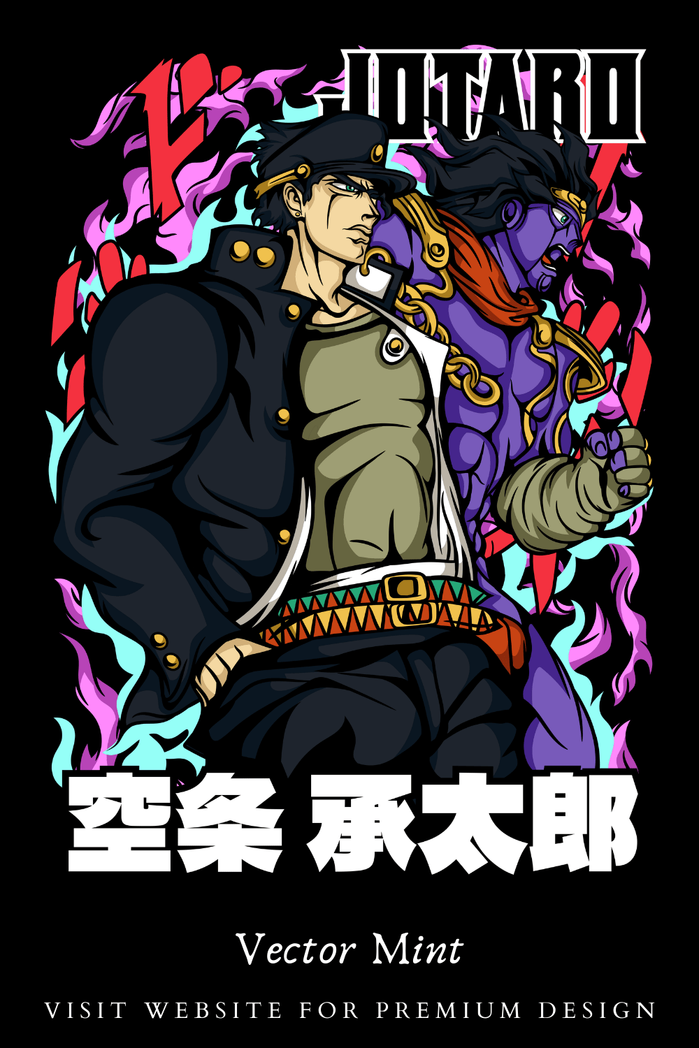 JoJo Jotaro Kujo Star Platinum Anime Streetwear Graphic PNG Stardust Crusaders Manga T-Shirt Design