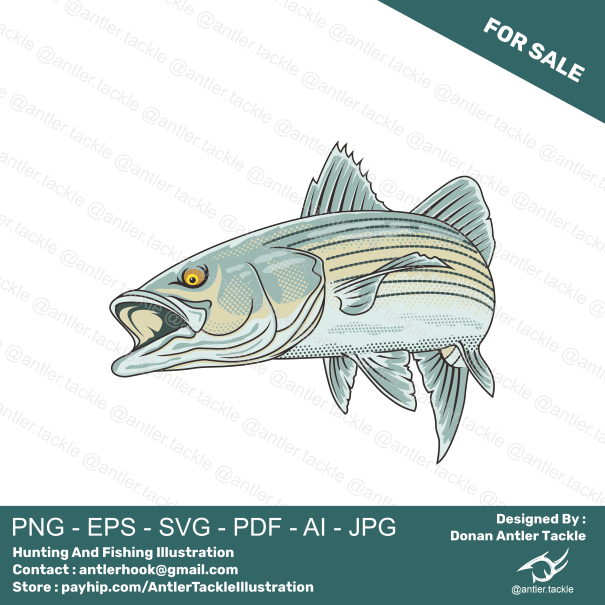 Striped Bass Fish Fishing Logo Exclusive License Designed By Donan Antler Tackle