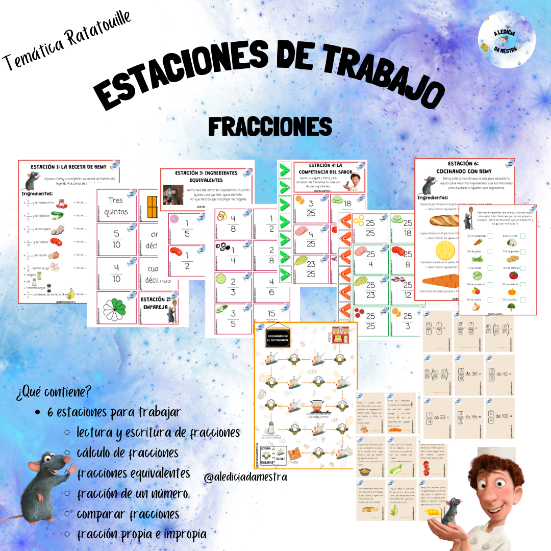 Os comparto unas estaciones de aprendizaje para el trabajo de las fracciones con la temática de la película de Ratatouille.