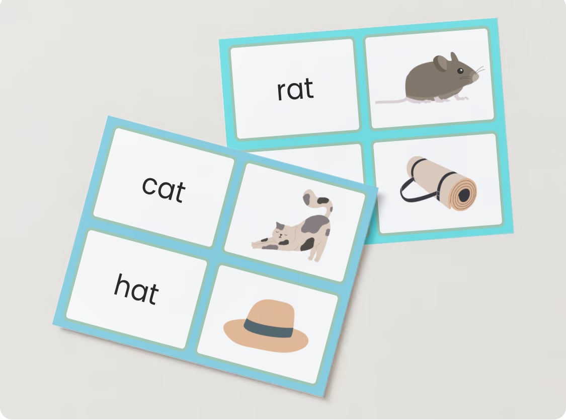 These colorful flashcards are designed to help young learners recognize and associate common sight words with their corresponding pictures. Each card features a simple word (e.g., "cat," "hat") on one side and a corresponding picture on the other.