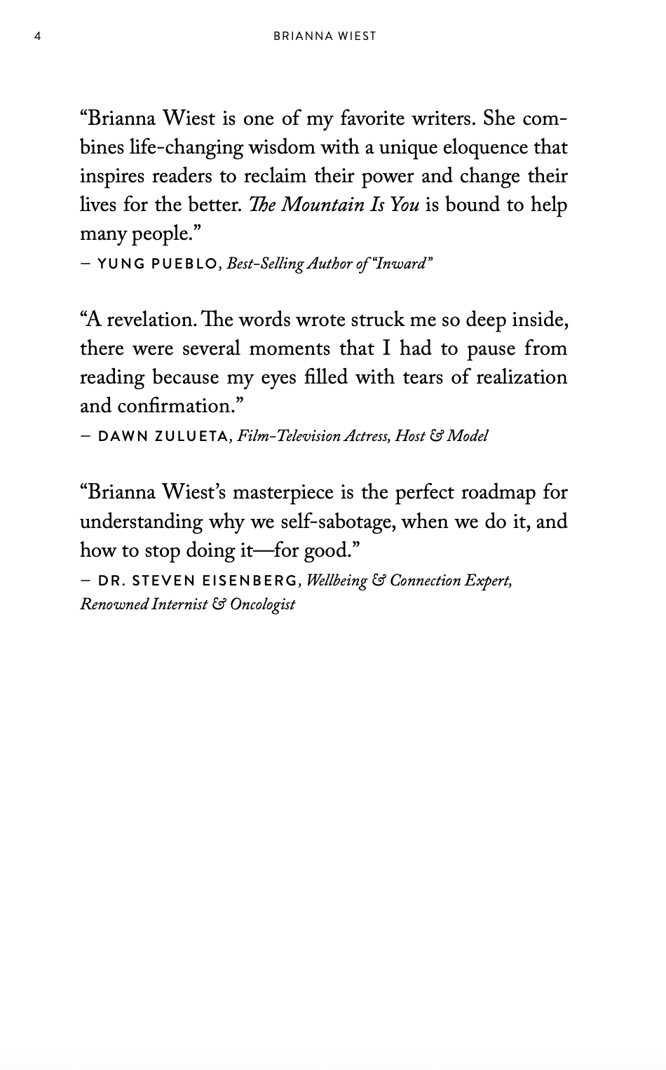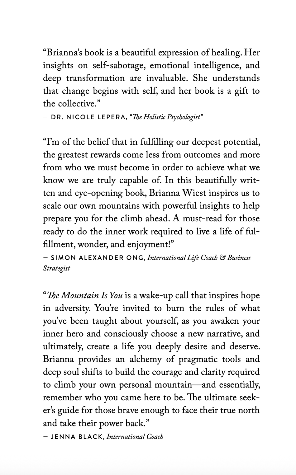 This is a book about self-sabotage. Why we do it, when we do it, and how to stop doing it—for good. Coexisting but conflicting needs create self-sabotaging behaviors. This is why we resist efforts to change, often until they feel completely futile. But by extracting crucial insight from our most damaging habits, building emotional intelligence by better understanding our brains and bodies, releasing past experiences at a cellular level, and learning to act as our highest potential future selves, we can step out of our own way and into our potential.