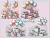 10 Pastel Metallic Balloon Arch, Balloon Bunch and presents
