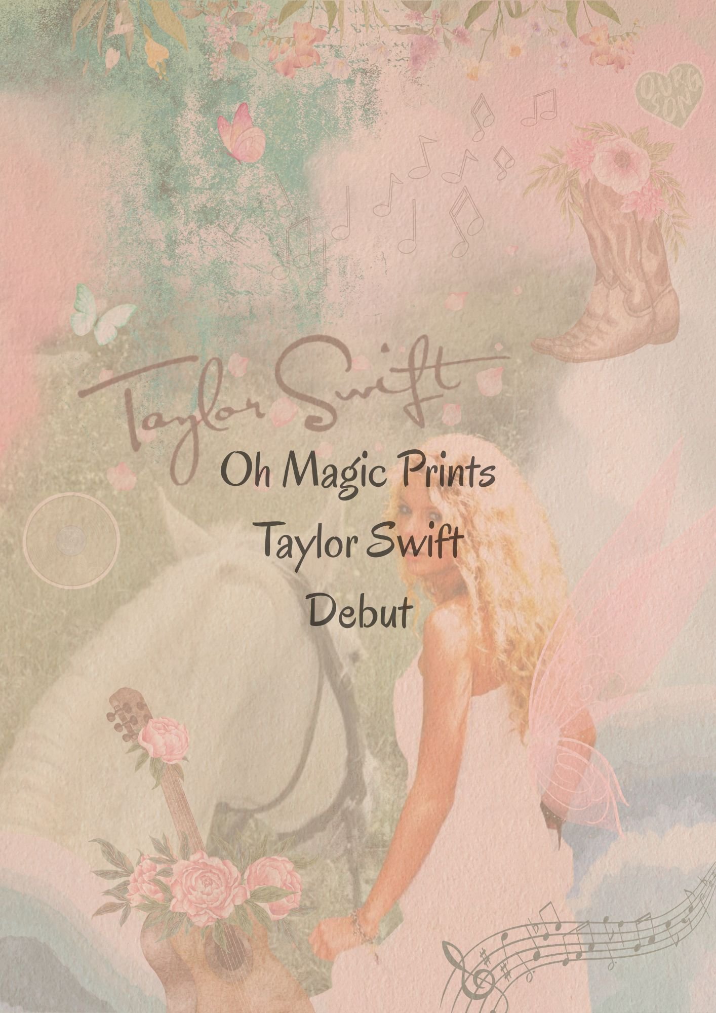 Step into the dreamy beginnings of Taylor Swift’s journey with this beautifully designed Debut Era poster. Inspired by the sweet country roots and fairytale vibes of Taylor’s first album, this digital artwork captures the innocence, sparkle, and charm of her early years.