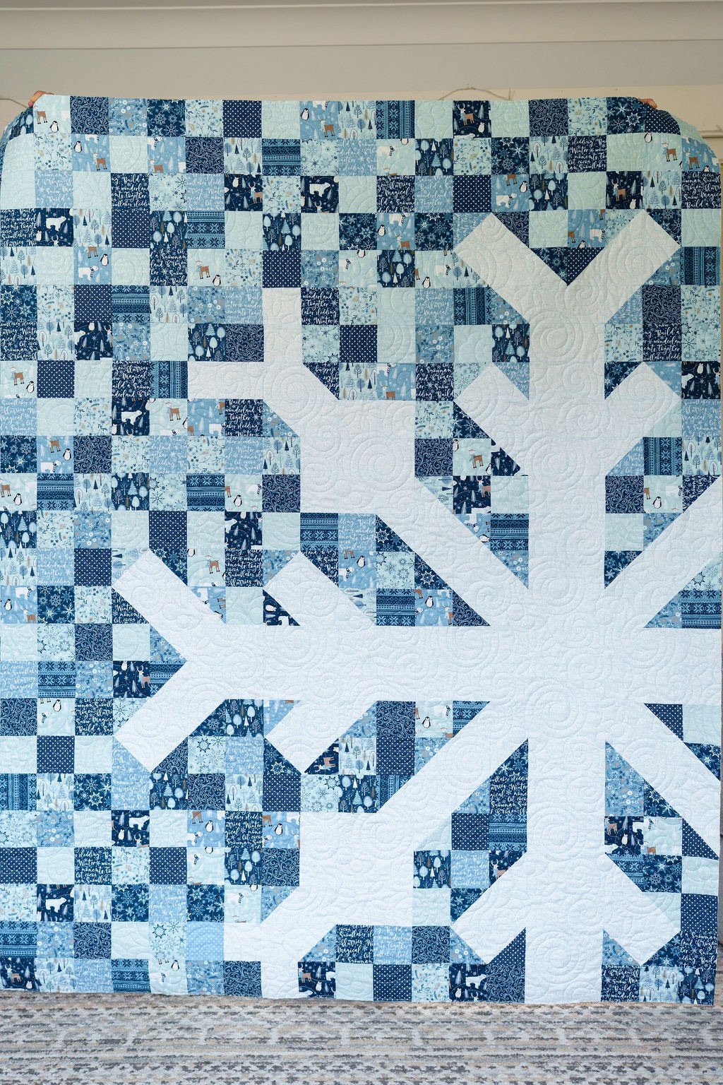 Bring calm winter magic into your home with this striking handmade snowflake quilt, created with the Winter Magic collection in soft, icy blues and navy prints. A bold snowflake floats across a patchwork of woodland animals, snowy trees and frosty patterns, making it the perfect statement piece for your festive decor or all winter long.